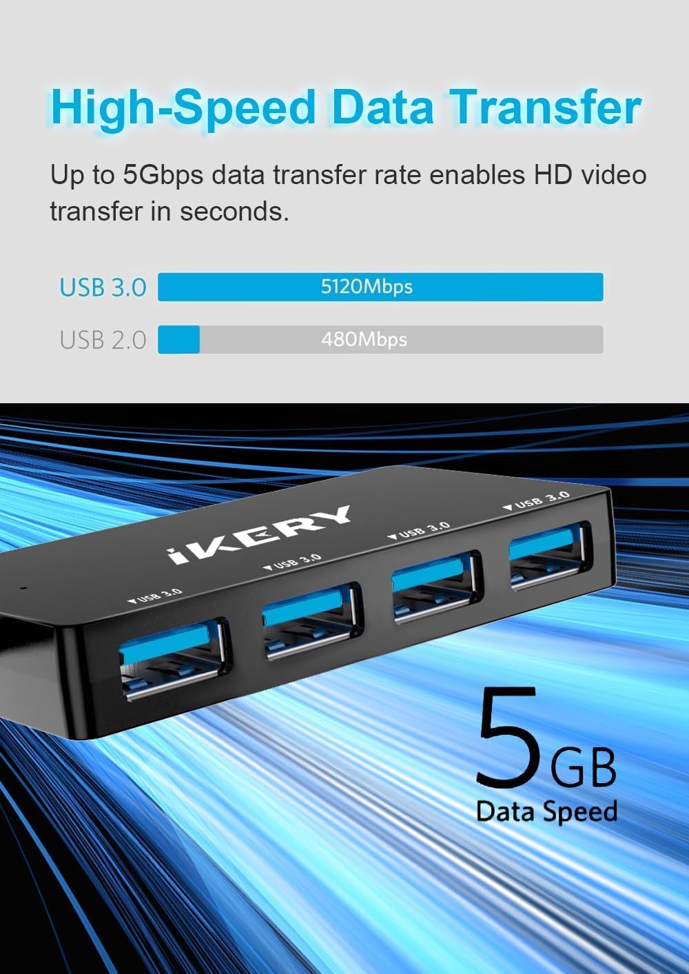 Broad Compatibility for Multiple Devices: Easily connect a wide range of USB accessories! Simultaneously power and transfer data for smartphones, tablets, flash drives, external hard drives, mice, keyboards, printers, and more (power-dependent).