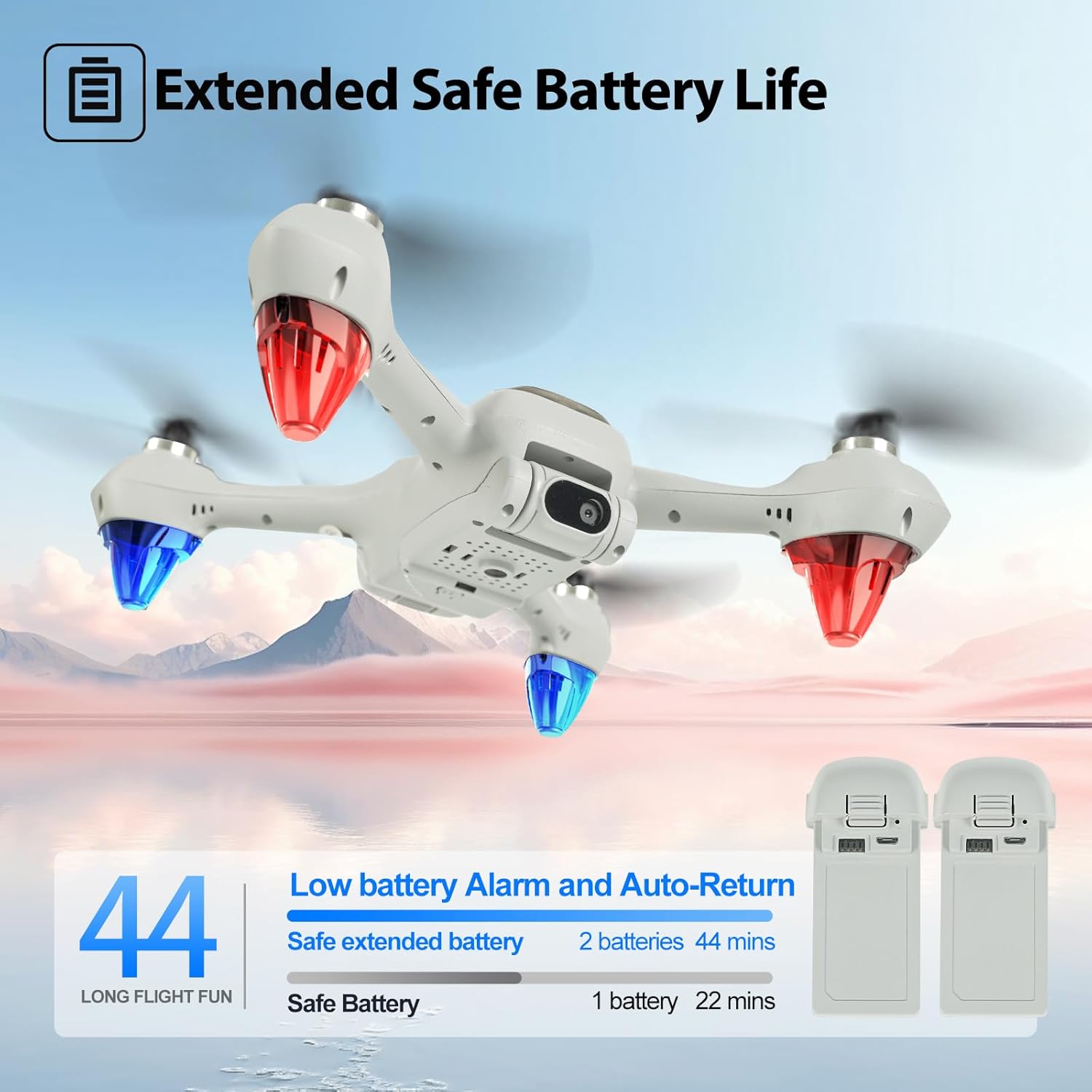 【Extended Flight Time with Two Batteries】: Due to its lightweight design, just under 250g, we have increased the battery capacity compared to the previous generation, so that the total battery life of its two batteries increased to a maximum of 44 minutes, Make it more value for money.