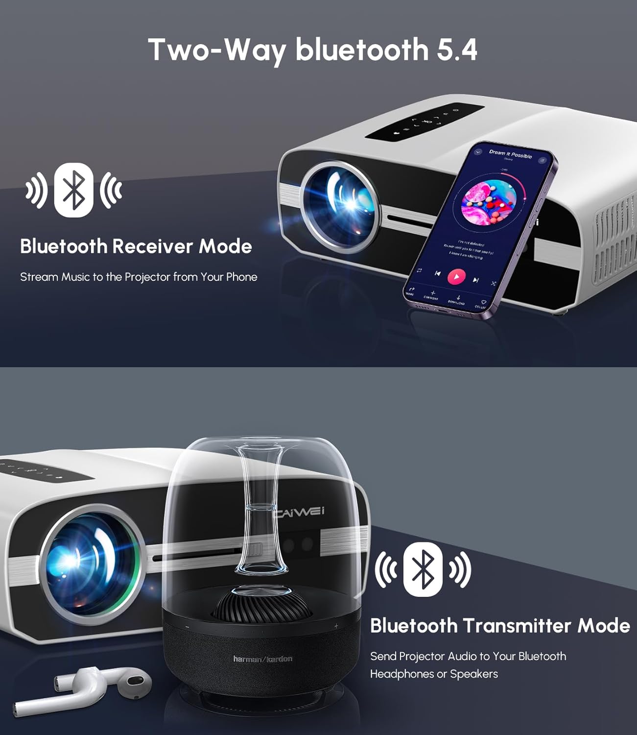 [Blazing-Fast WiFi 6 & Bluetooth 5.2 ]Enjoy dual-band 5G/2.4G WiFi and Bluetooth 5.2 for seamless wireless connectivity.Mirror videos, photos, and games from your smartphone or Miracast device effortlessly. Enjoy wireless screen sharing—seamlessly connect your phone or tablet to a massive 300-inch display.