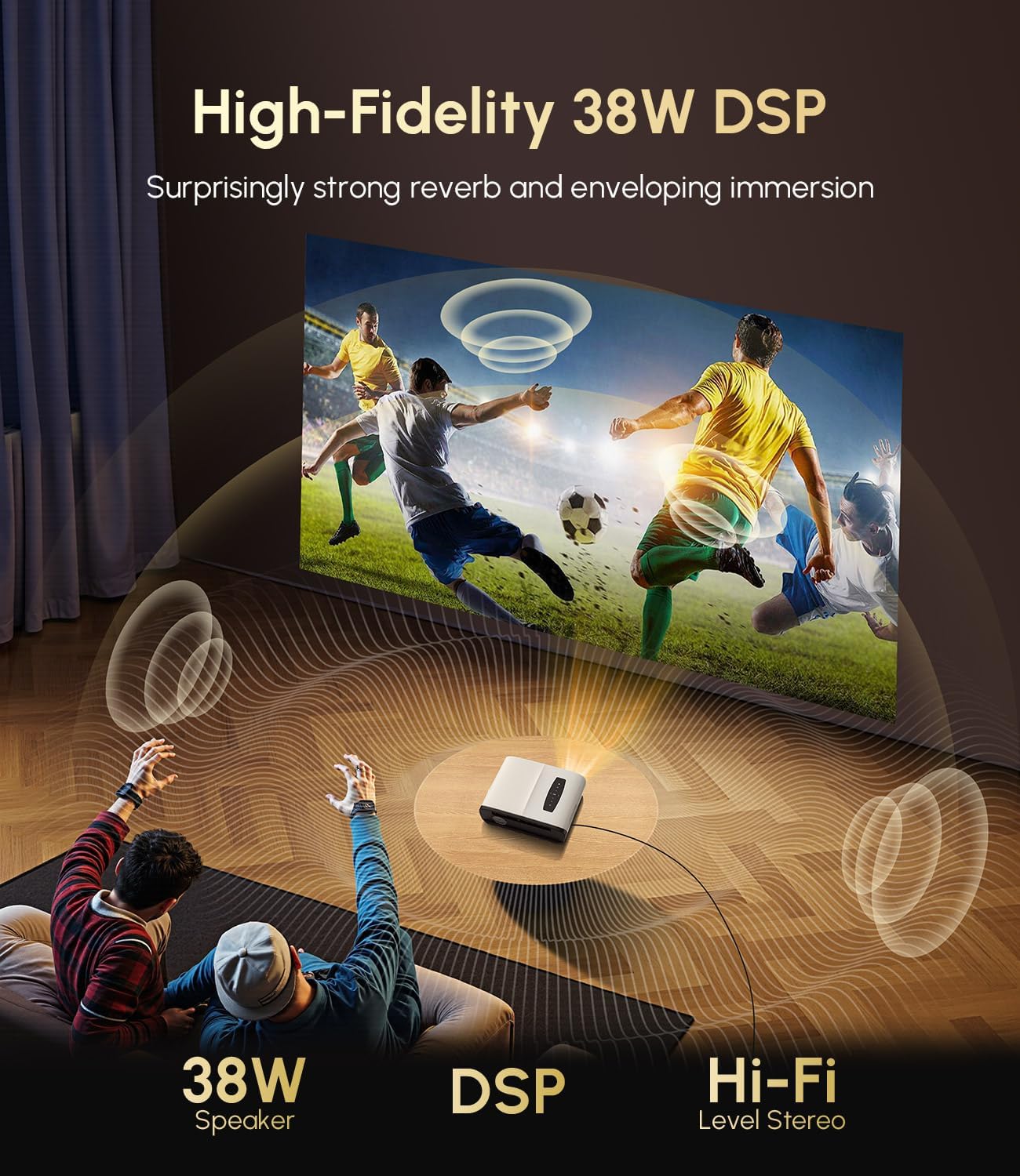 [ Fully-Sealed Engine & Noise Reduction ] 50% Larger Heatsink + Ultra-Quiet Cooling (<28dB) – Binge-watch for hours without overheating or distraction. Silent cinema-grade cooling, so all you hear is the action.Dust-Proof Optical Engine – No dark spots, no fading. Just crystal-clear 1080P visuals, year after year