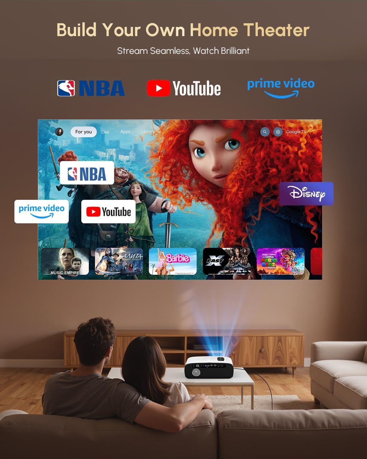 [ Enjoy YouTube, and More ] The A9S Smart Projector Android 11.0, the user-friendly interface offers smooth navigation and compatibility with over 8,000 apps, including YouTube, and Prime Video for an ultimate viewing experience