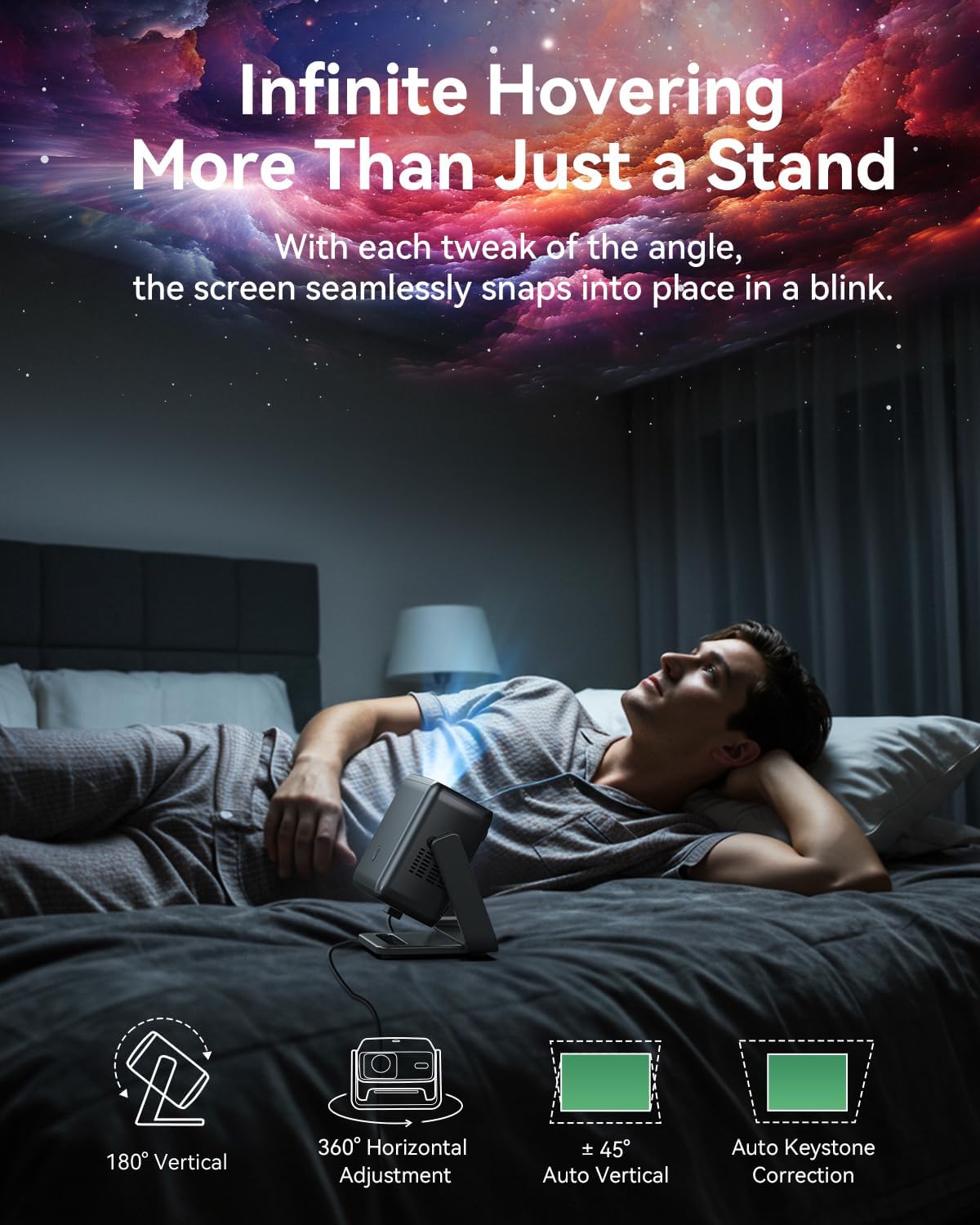[180° Flexible Viewing & 200-Inch Giant Screen]: Enjoy cinematic experiences anytime, anywhere with the Aubor Mentech 4K projector. Featuring a 40-200 inch adjustable screen and a 180° rotating lens, it allows you to project onto walls or ceilings with ultimate flexibility. The long-lasting LED light source provides up to 50,000 hours of reliable use. Built with durability in mind, it boasts a sealed optical engine and dual-fan cooling system for outstanding dustproof and overheating protection. Automatic temperature control ensures stable long-term performance