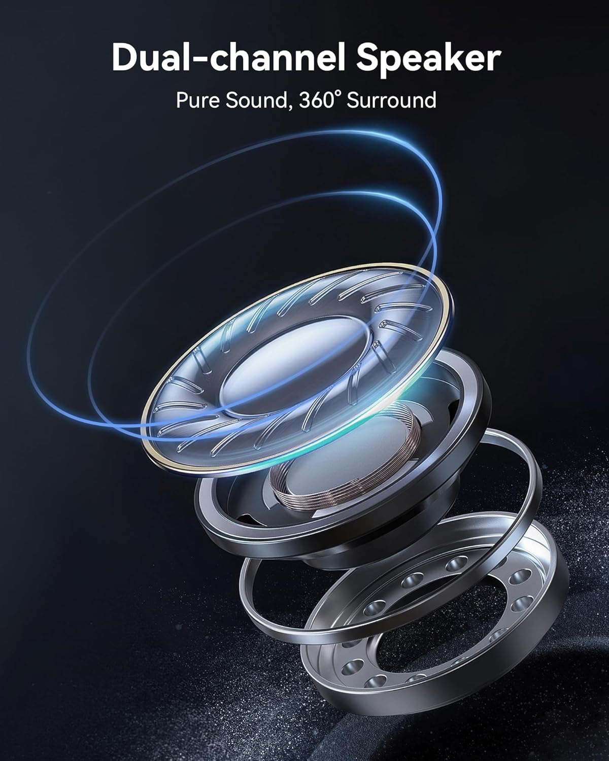 360° Surround Sound, Dual-Channel Design: This 4K support projector adopts an independent speaker stand design and features a unique audio-visual separation design, which not only delivers cinema-grade sound but also enhances product durability. With built-in 2*5W high-fidelity speakers, it provides a rich, immersive sound experience with deep bass and crisp highs, transforming every movie night into an auditory delight. The 360° flexible mount and soft diffuse reflection technology offer more viewing angle choices and reduce eye strain for more comfortable viewing.