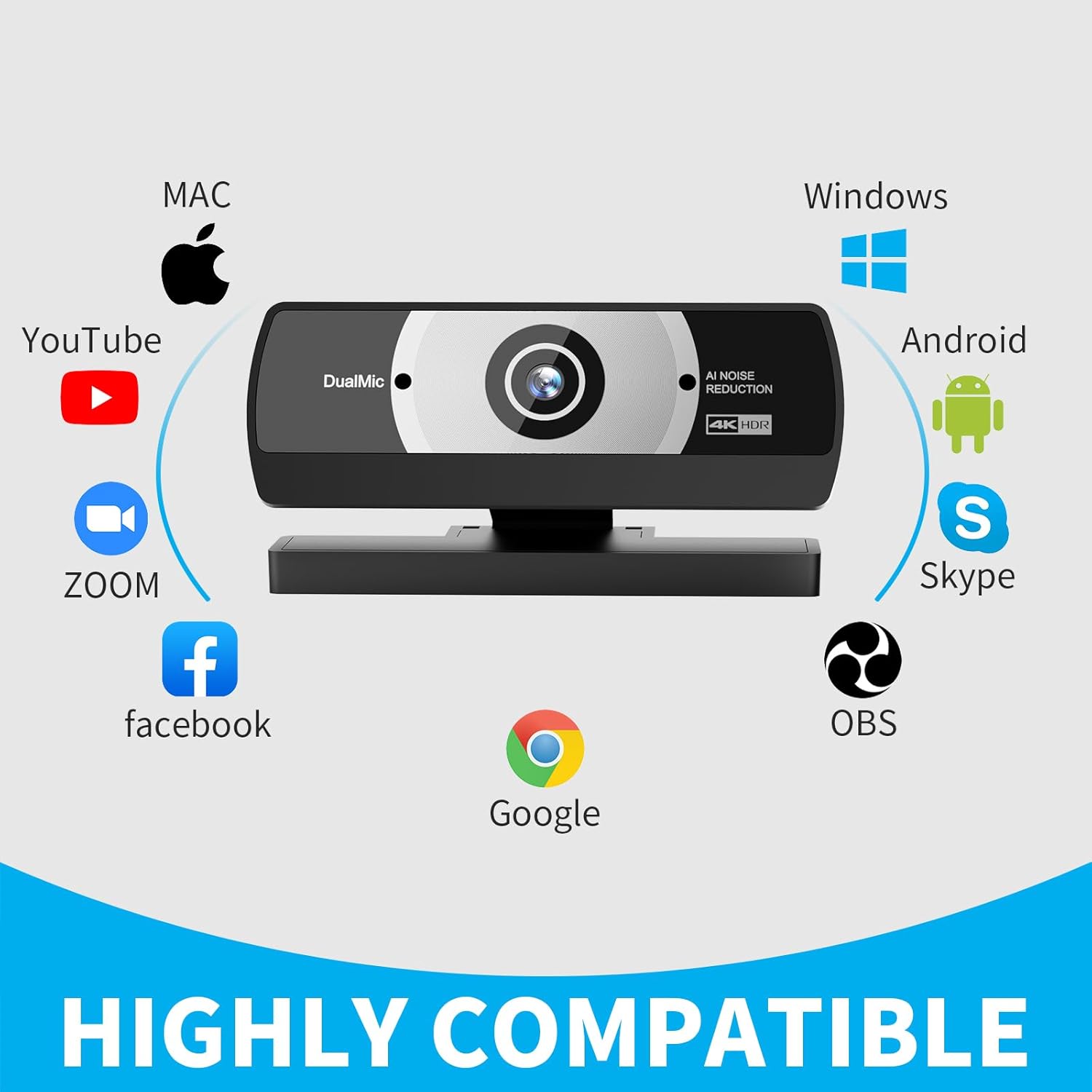 【Seamless Plug-and-Play Setup】Designed for user convenience, the webcam is compatible with USB 2.0, 3.0, and 3.1 interfaces, plus OTG. It requires no additional drivers and comes with a 5ft USB power cable. Simply plug it into your device and start capturing high-quality video right away! Easy to use on multiple devices, ensuring hassle-free setup and instant functionality