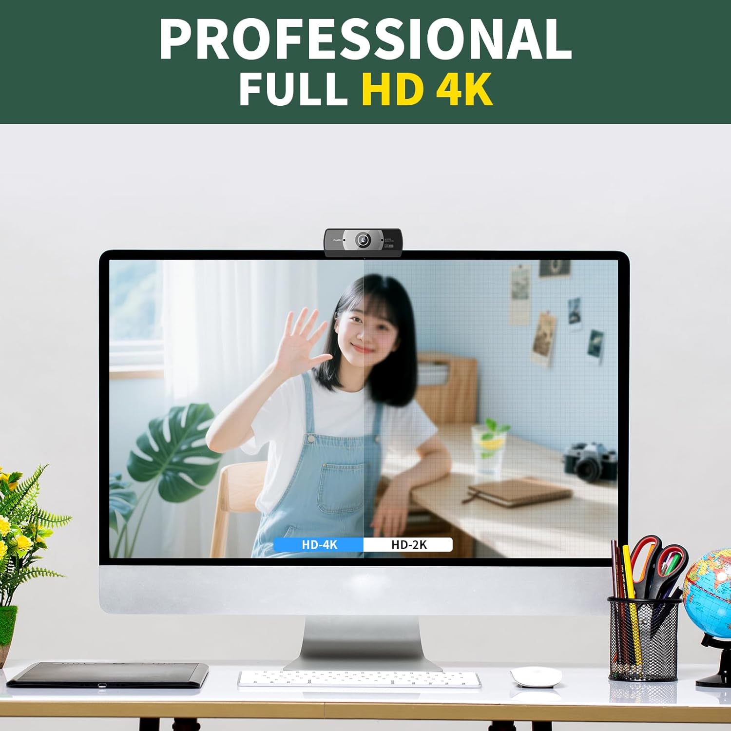 【4K HD Clarity with Wide-Angle Lens】Experience exceptional clarity with the DICCIK 4K Full HD Webcam. Its lens provides sharp, vibrant images and smooth video at 30 frames per second, making it ideal for gaming, video calls, online teaching, live streaming, and content creation. Capture every detail with vivid colors and crisp visuals