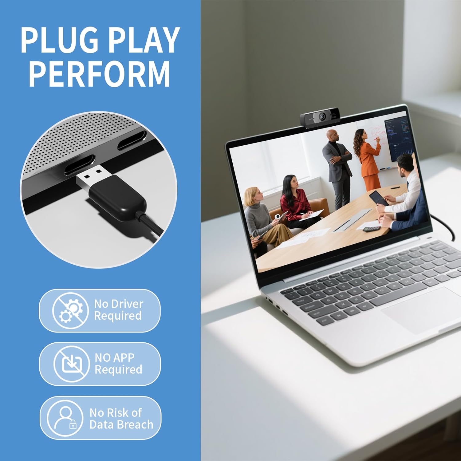 【Noise-Reducing Built-In Microphone】Our webcam is equipped with an advanced noise-canceling microphone that ensures your voice is transmitted clearly even in noisy environments. This feature makes it perfect for webinars, conferences, live streaming, and professional video calls—your voice remains crisp and clear regardless of background noise or distractions