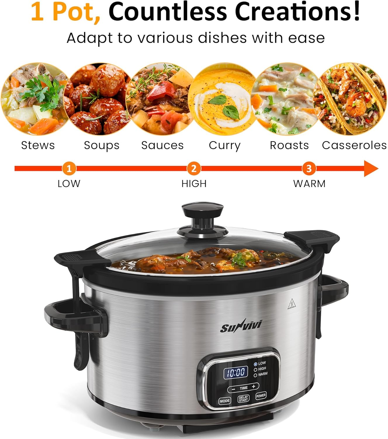 One Pot, Endless Culinary Options: Explore limitless culinary possibilities with this digital slow cooker. Whether you’re creating flavorful dips, gently heating dishes to perfection, keeping food warm for gatherings, or meeting your daily cooking needs, this appliance is your ultimate kitchen companion.