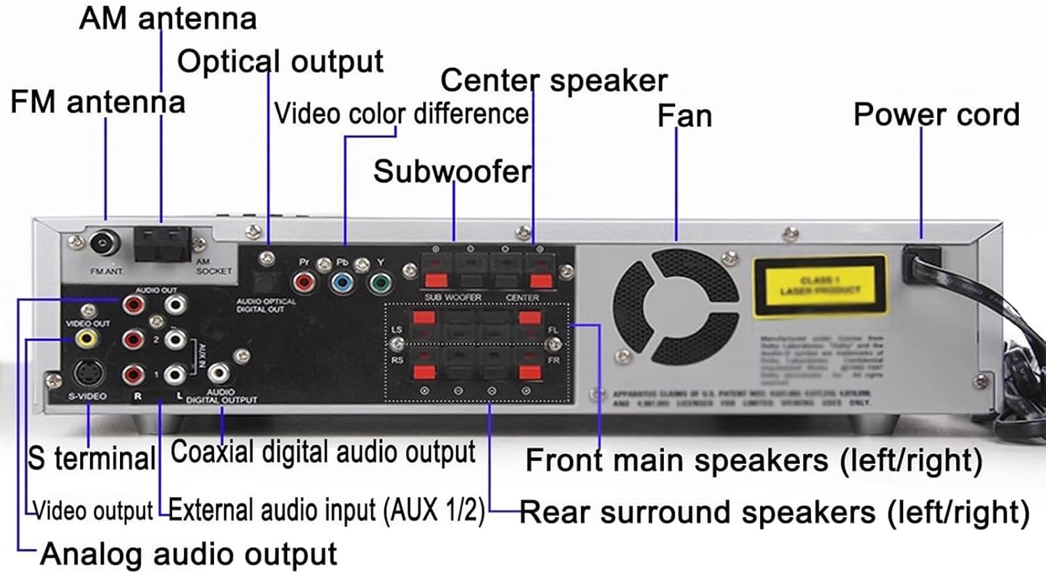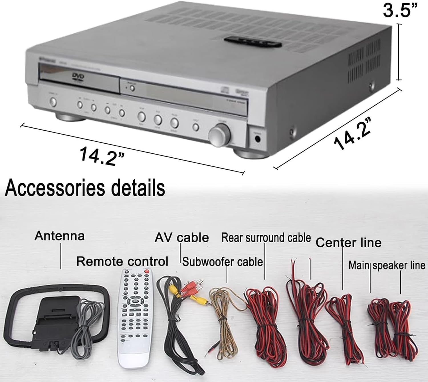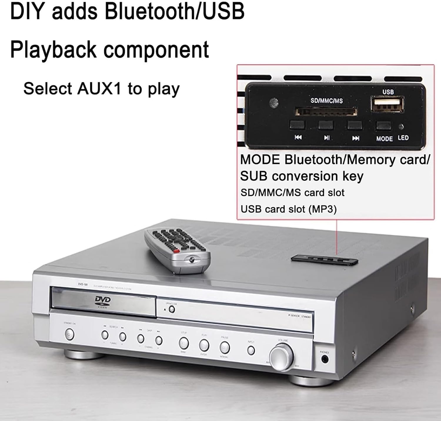 5.1 Channel Home Theater Amplifier, DVD Player, with Remote Control, Support USB/DVD/Vcd/Opt/Coax, Surround Sound Equalizer, Adjustable Volume, for Home, Theater
