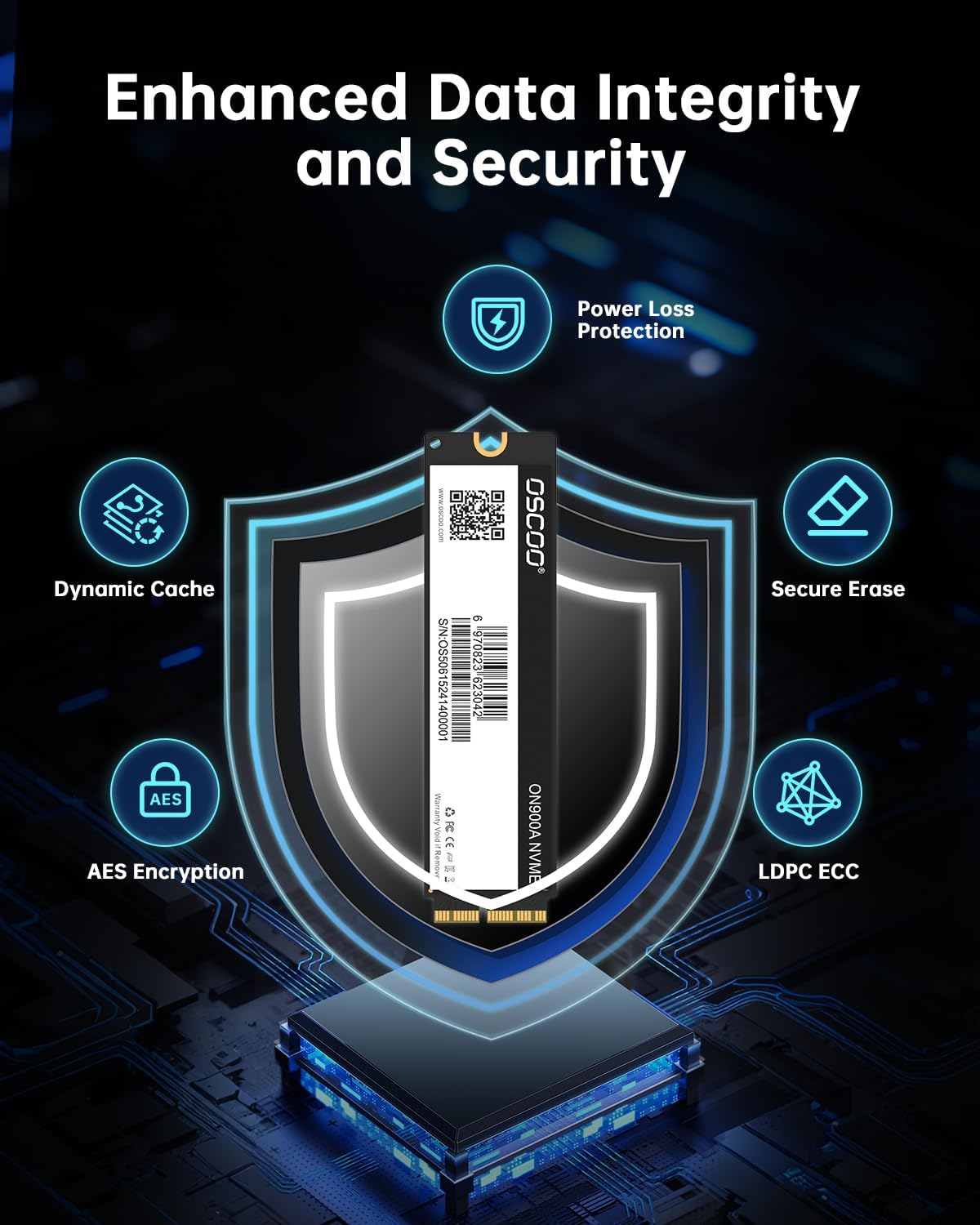 Built-In Protection & Security: Supports AES-256 encryption, TRIM, S.M.A.R.T., and NCQ technologies. With LDPC ECC, bad block management, and global wear leveling, your data stays safe and your drive performs consistently over time—without compromise