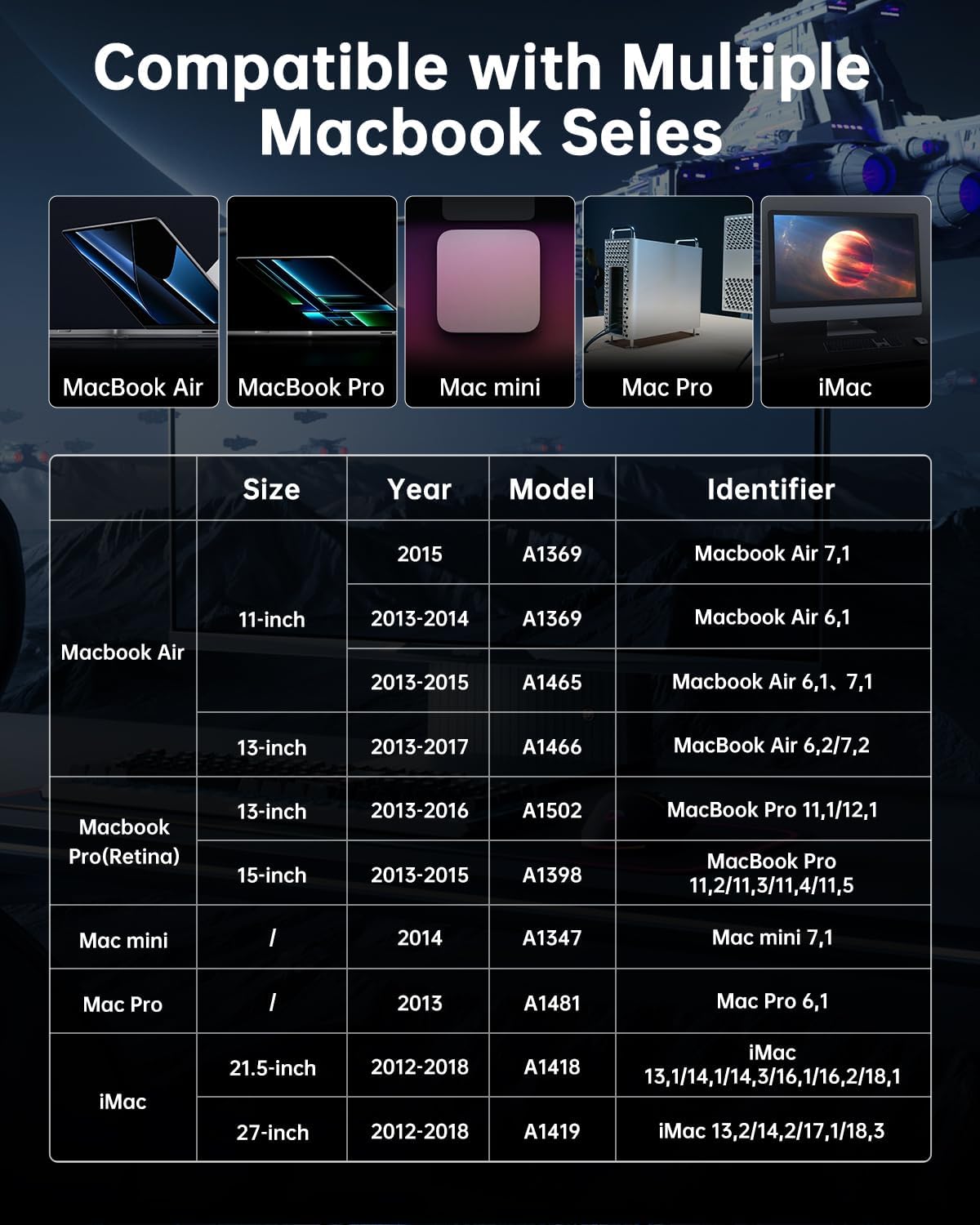 Easy Upgrade – No Adapter Needed: Suitable for Mac-compatible devices such as MacBook Air models A1369 (2015, 2013-2014), A1465 (2013-2015), A1466 (2013-2017); MacBook Pro Retina models A1502 (2013-2016), A1398 (2013-2015); Mac mini (A1347 2014); Mac Pro (A1481 2013); and iMac (A1418, A1419 2012-2018). Easily replace your old SSD with plug-and-play installation—no adapter required.