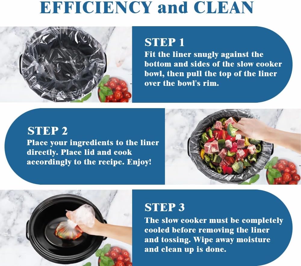 Easy to Use: Simply place the slow cooker liner over the cooker, add your ingredients inside the liner, and you’re ready to start simmering. After enjoying your meal, just lift the bag and toss it into the trash can. The pleasant part is that the slow cooker stays clean