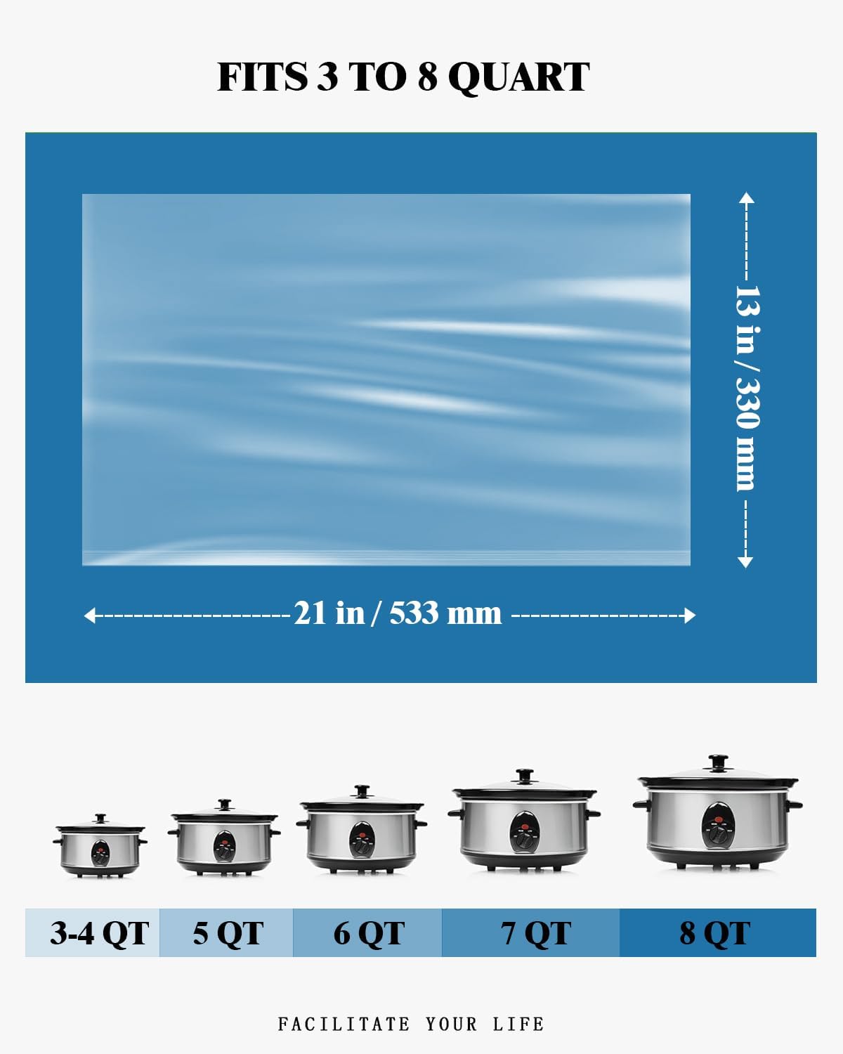 HEAVY DUTY MATERIAL: 60 pcs 13 inch x 21 inch slow cooker liners for 3QT to 8QT for slow cooker cooking prevents bones from puncturing and spilling, won’t affect the flavor of your food, and makes cooking food easy and safe.requirements of various households