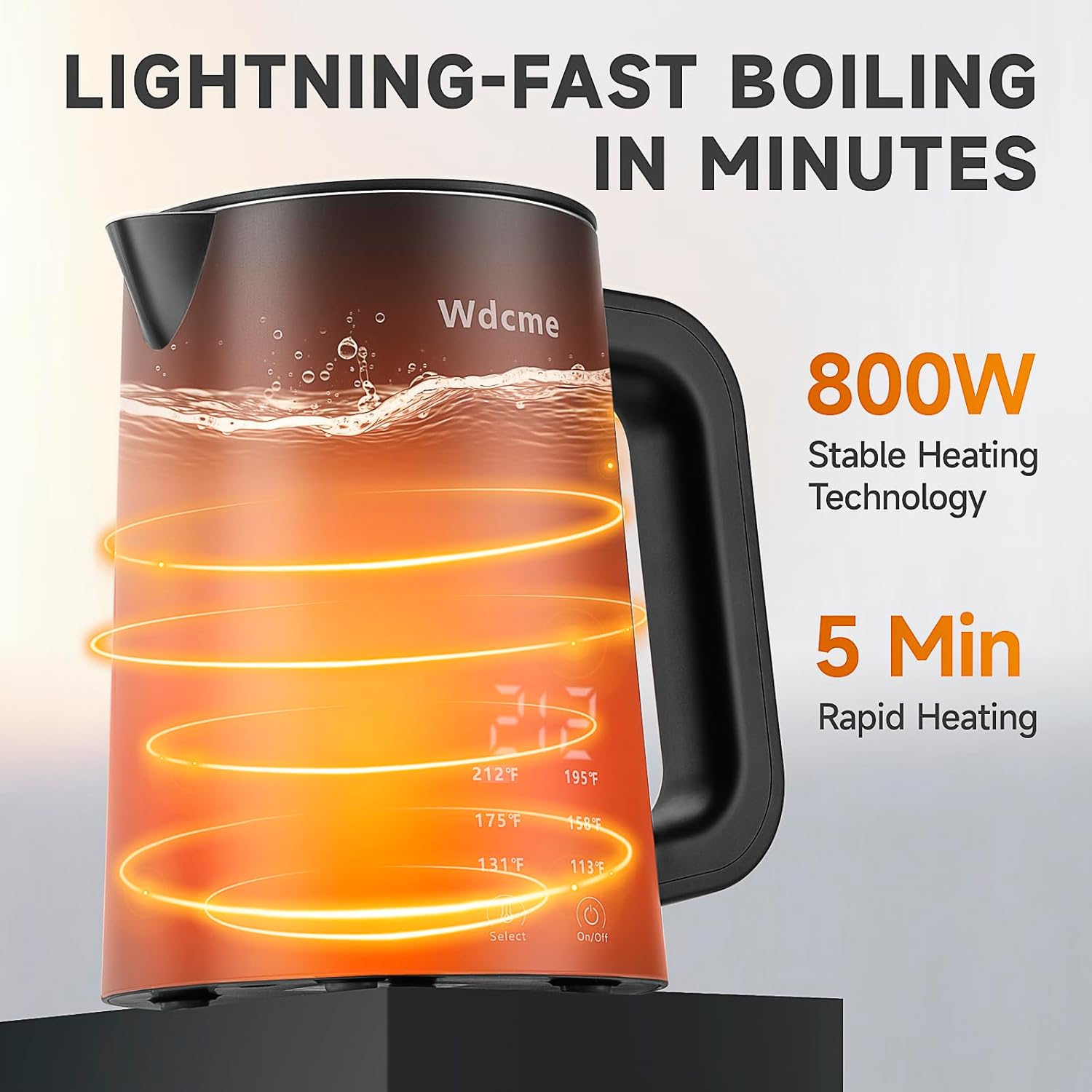 【12 Hours Keeps Warm】This electric kettle temperature control boasts a keep-warm setting that maintains the temperature of the water for up to 12 hours after it reaches the desired temperature with auto shut off and boil-dry protection.