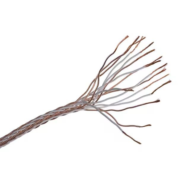 The Audtek 8TC Pure Copper Audiophile-Grade 16 Core Interlaced Braided OFC Hi-Fi Speaker Wire is engineered for audiophiles seeking superior signal integrity and flexibility. Featuring 16 individually insulated conductors, eight white and eight clear, braided together, this cable minimizes electromagnetic interference while maintaining a sleek, professional appearance. Its high-strand-count oxygen-free copper (OFC) construction ensures efficient power delivery, making it ideal for high-performance audio systems.