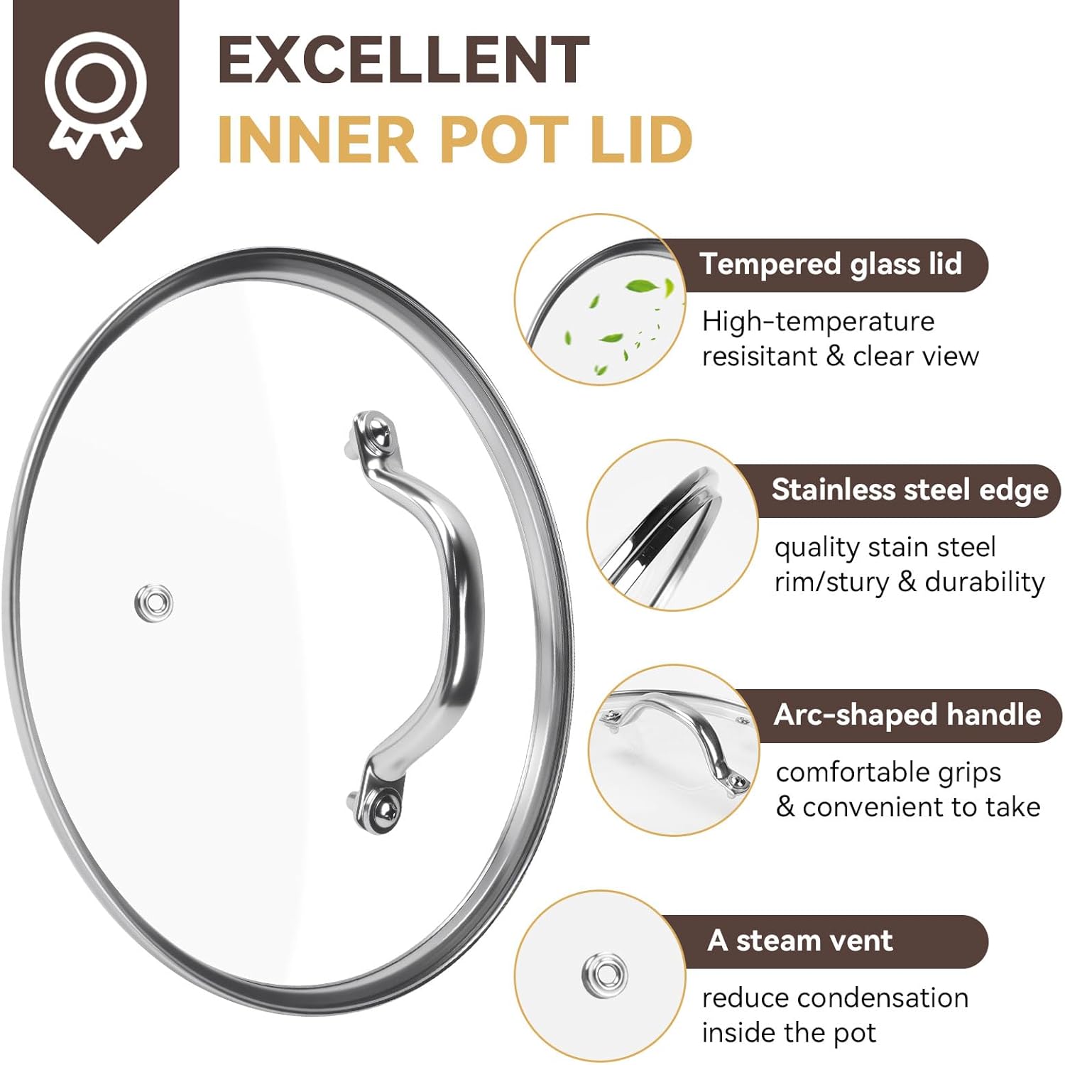 【6 Quart Pot Lid】Our tempered glass cooker pot lid compatible with Instant Pot 6qt pressure cooker models, 9.1 inch, round. The inner cooking pot lid also fit for most other brand 6 qt pressure cooker pot, but not all, please confirm the shape and size before purching.