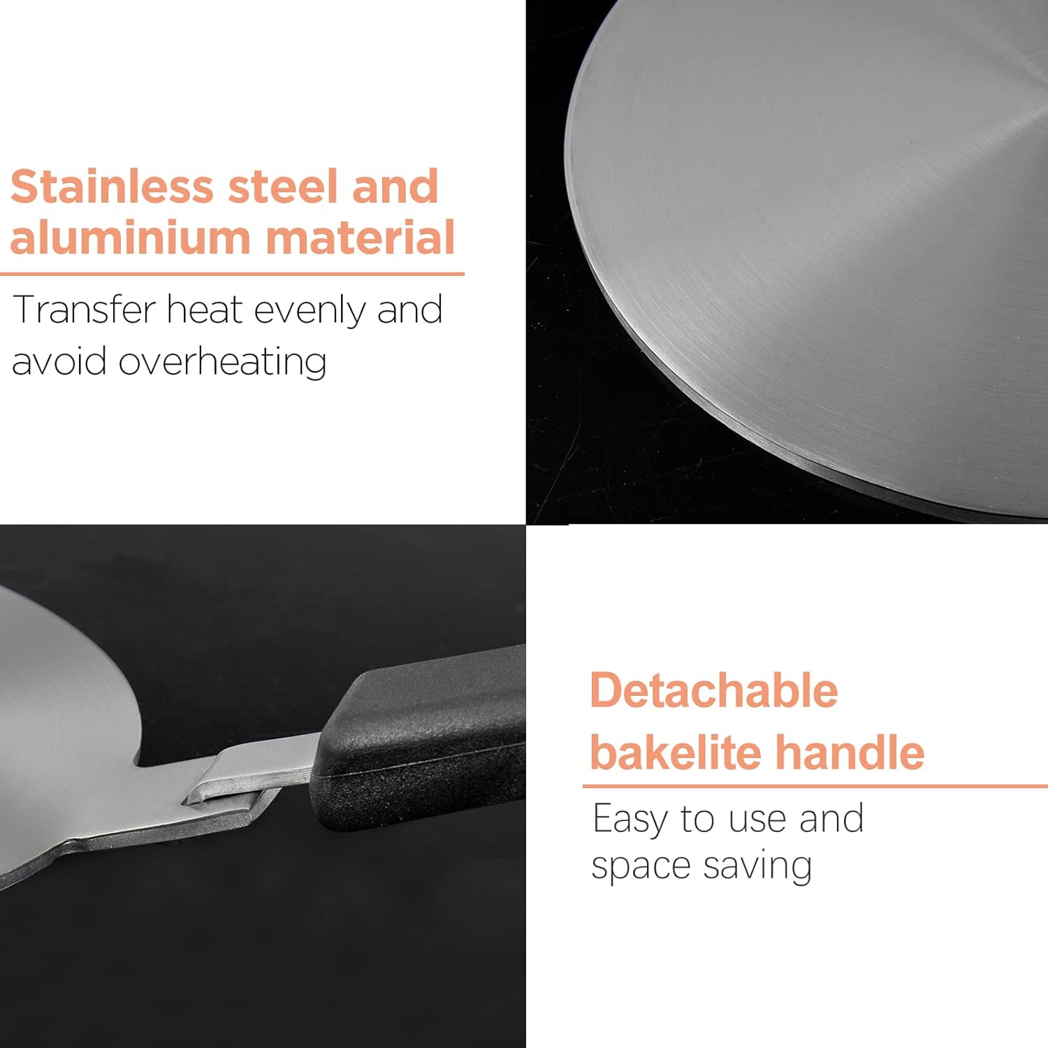 Material: The adapter consists of three layers, the top and bottom are stainless steel and the middle is aluminium. With good heat distribution, it transfers heat quickly and is energy efficient