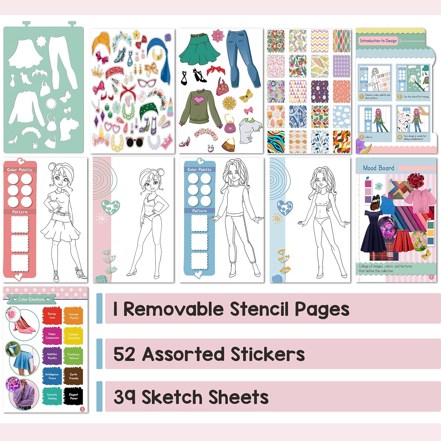 The included stencil features a variety of shapes and patterns that are easy for kids to trace and use, helping them create their very own fashion designs with ease and precision.