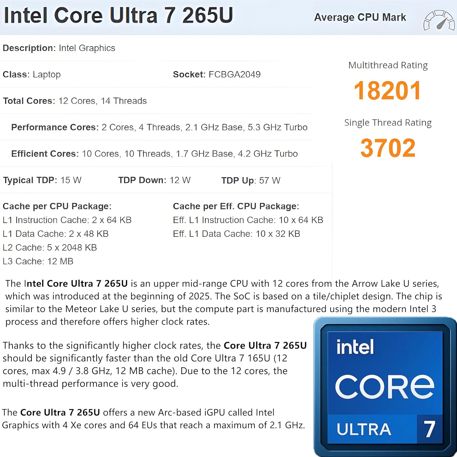 Intel Core Ultra 7 265U vPro (12 TOPS NPU, 12 cores, up to 5.3 GHz)