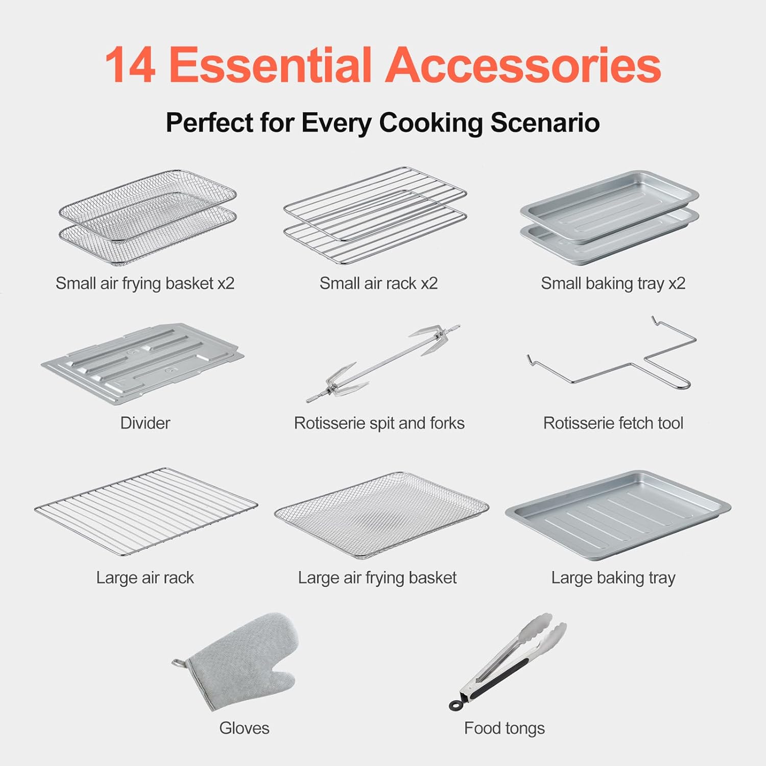 【500°F Heat & 360° Crisping】Take flavor further. With upper and lower heating elements plus dual convection fans, this airfryer toaster combo reaches up to 500°F for faster, crispier, and more even results. Enjoy golden fries, juicy rotisserie chicken, sizzling steak, and more—cooked to perfection every time.