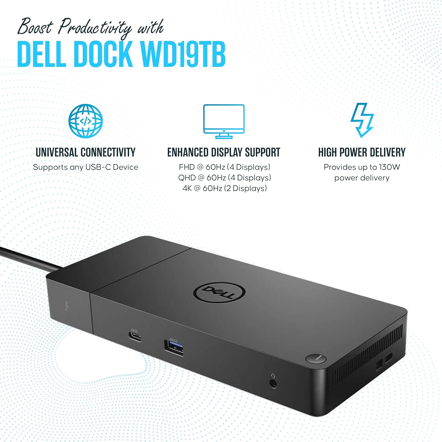 [Package Includes] – Dell Dock Station WD19TB, Original Dell 180, 1x HDMI Cable, 1x Displayport Cable, Microfiber Cleaning Cloth.