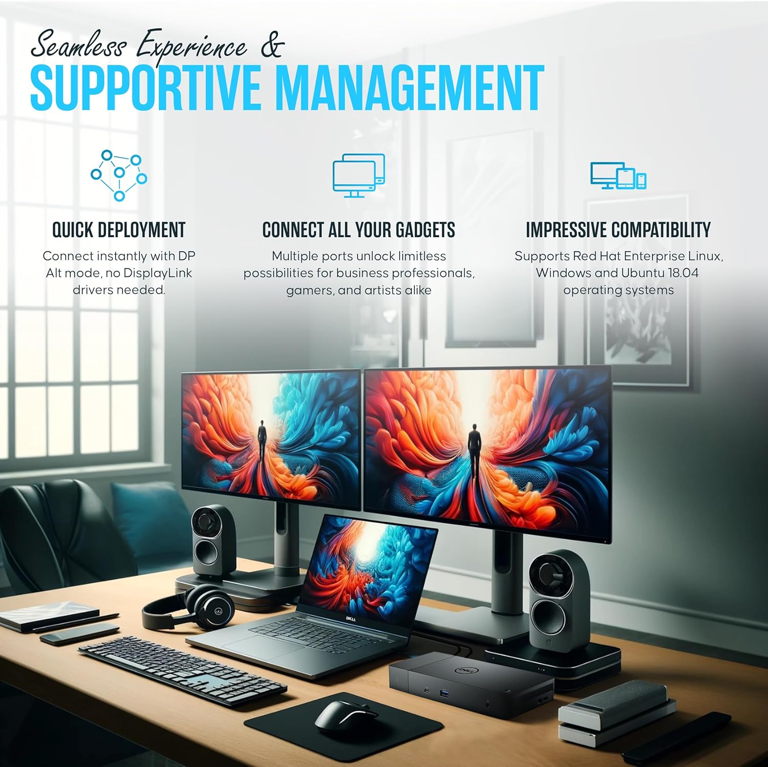 [Seamless Plug & Play] No drivers needed. Connect with Dell systems for advanced features. Boost PC via Express supply on the mighty Thunderbolt dock, enhancing productivity.