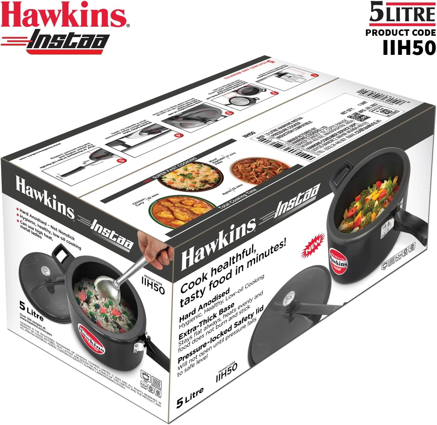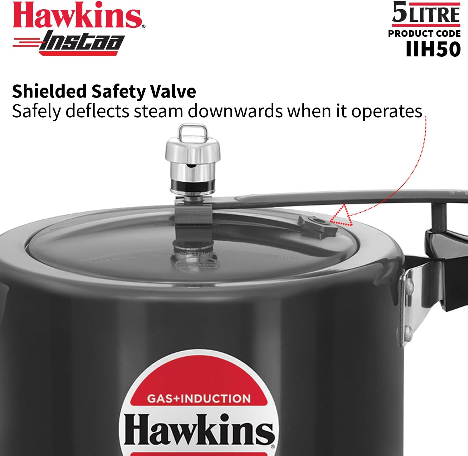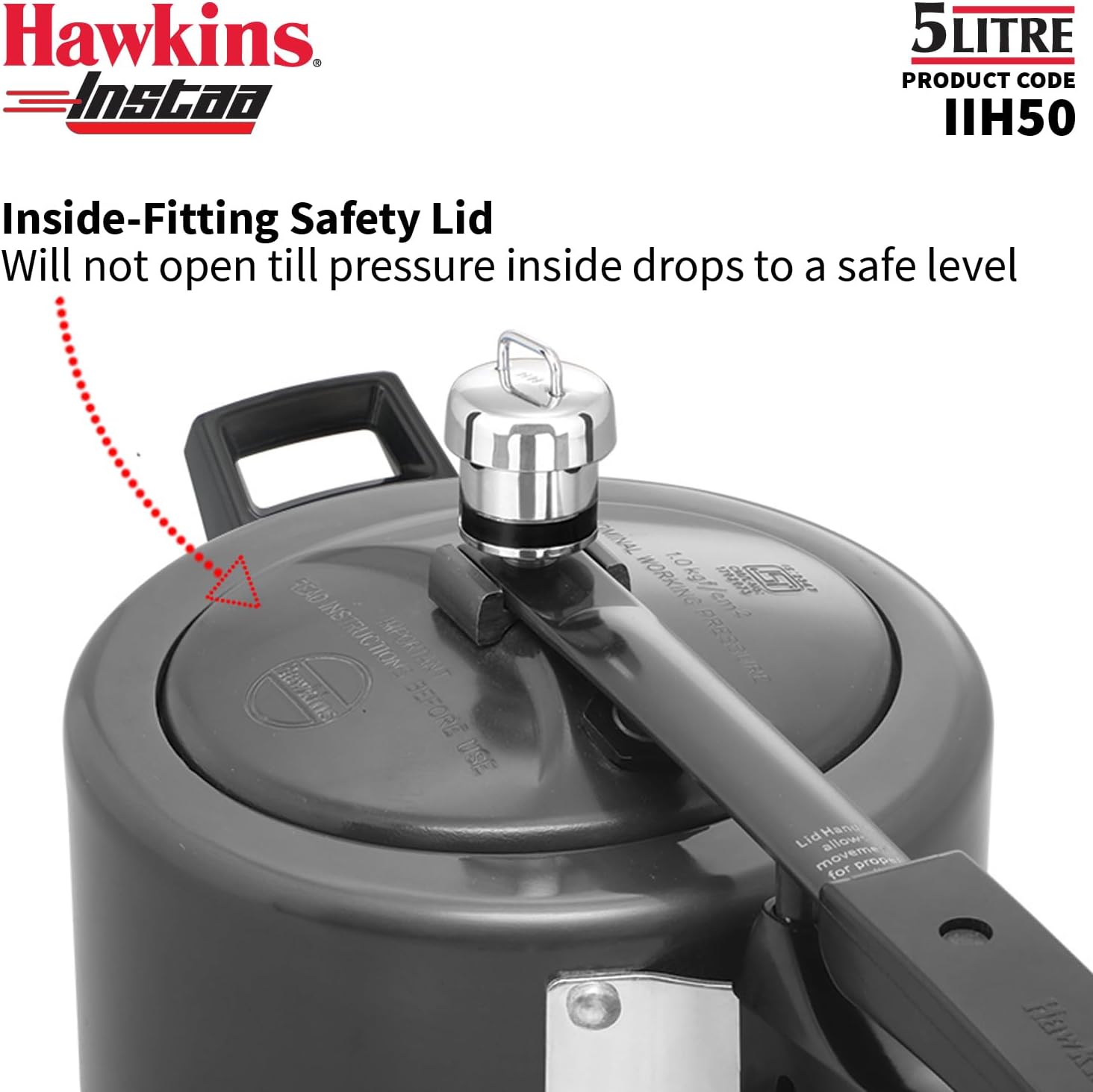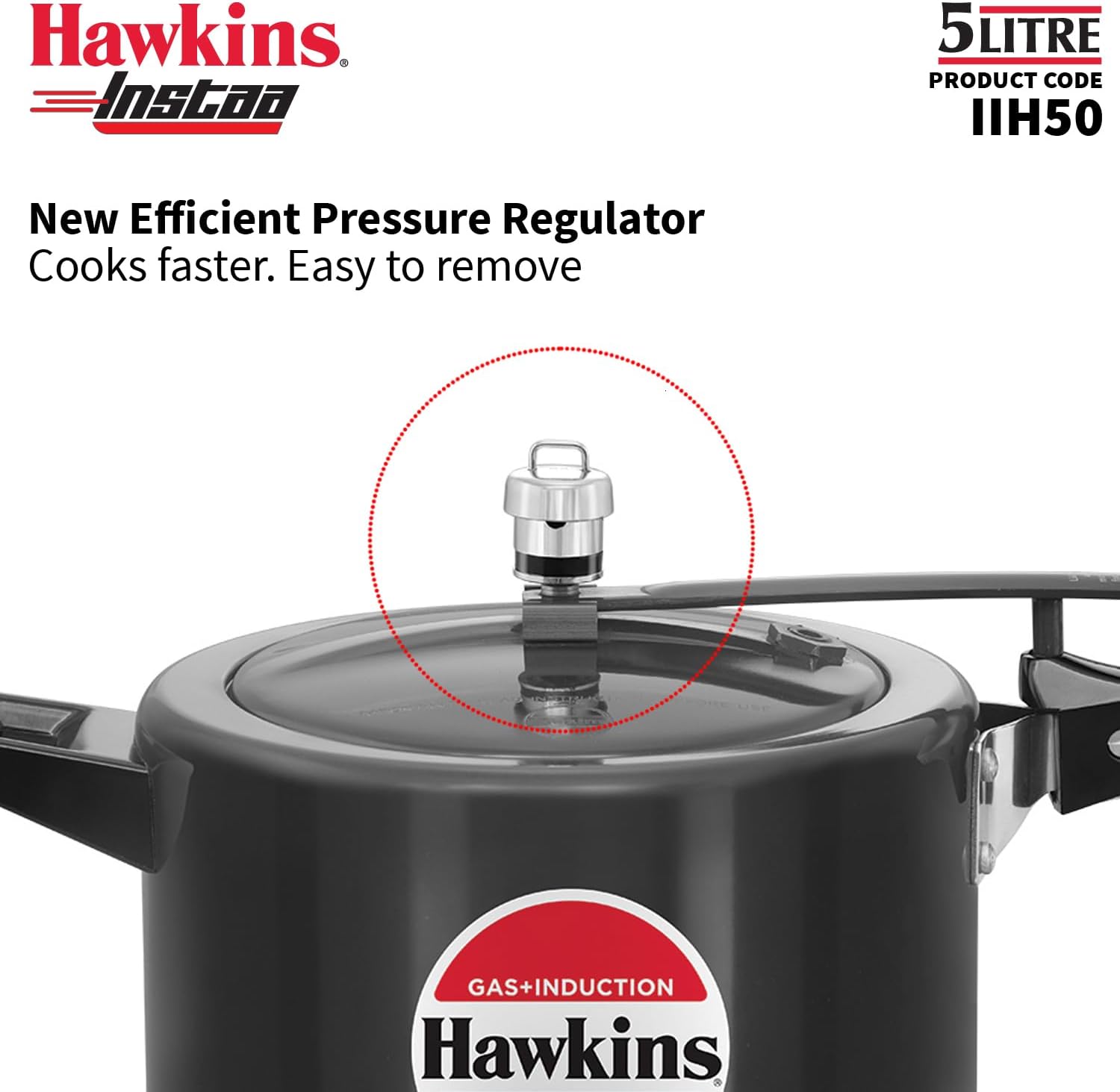 The ideal pressure cooker for 5 to 7 persons is designed to meet various needs and ensure a safe and efficient cooking experience. It is hard anodized both inside and out, offering several benefits. Firstly, it is non-toxic, making it a healthy choice for cooking. It is also hygienic and allows for low-oil cooking, promoting healthier meals. Additionally, the hard anodized surface does not pit or tarnish and maintains its new look for years. The pressure cooker features a 4.88 mm extra-thick induction base, which provides multiple advantages. It stays flat always, ensuring stability during cooking. The even distribution of heat prevents food from burning or sticking, resulting in well-cooked meals. Moreover, this pressure cooker is compatible with both gas stoves and induction cooktops, offering versatility in the kitchen. It is equipped with a pressure-locked safety lid, which means it will not open until the pressure inside falls to a safe level. This feature prevents accidental opening and ensures user protection. Additionally, the pressure cooker boasts a shielded safety valve that directs steam downwards when it operates, minimizing the risk of steam-related accidents. Efficiency is enhanced with the inclusion of a new and efficient pressure regulator. This regulator allows for faster cooking times, reducing overall cooking duration. It is also easy to remove, facilitating convenience when releasing pressure or cleaning the cooker. To ensure perfect sealing and leak-free pressure cooking, the lid handle of this pressure cooker is designed with “play” or movement. This feature aids in achieving a tight seal, preventing steam from escaping during the cooking process. In summary, the ideal pressure cooker for 5 to 7 persons is made of hard anodized material, features an extra-thick induction base, has safety mechanisms like a pressure-locked lid and shielded safety valve, offers an efficient pressure regulator, and includes a lid handle designed for optimal sealing and leak-free cooking.