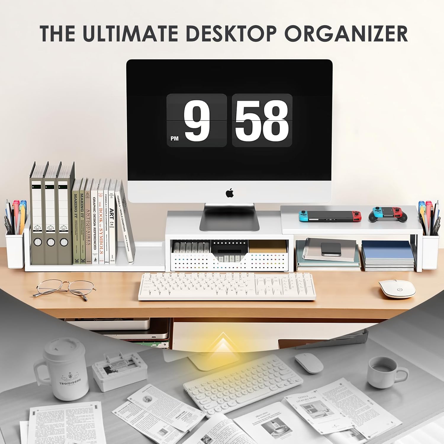 【Unlock Extra Space】Raise your monitor height with this monitor riser to free up space underneath. Store your keyboard, mouse, files, printer, gaming items, etc. neatly. Fits perfectly in any home, office, or dorm. Maximize desktop space and master desk organization
