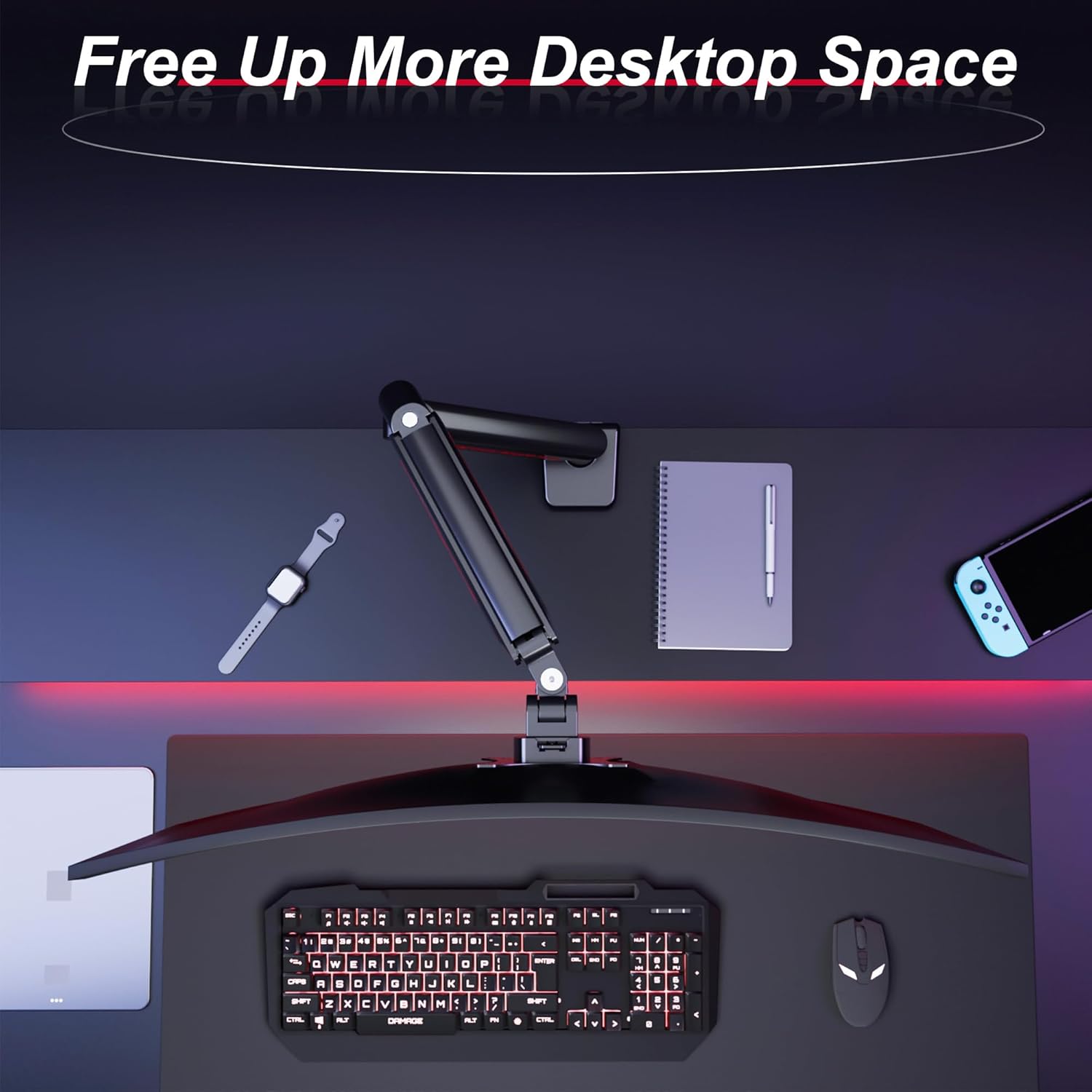 【Dual Mounting Options】Install in minutes using either the single monitor mount C-clamp (0.39″-2.76″ desks) or grommet base. All hardware included for 3-minute setup – no technical skills required.