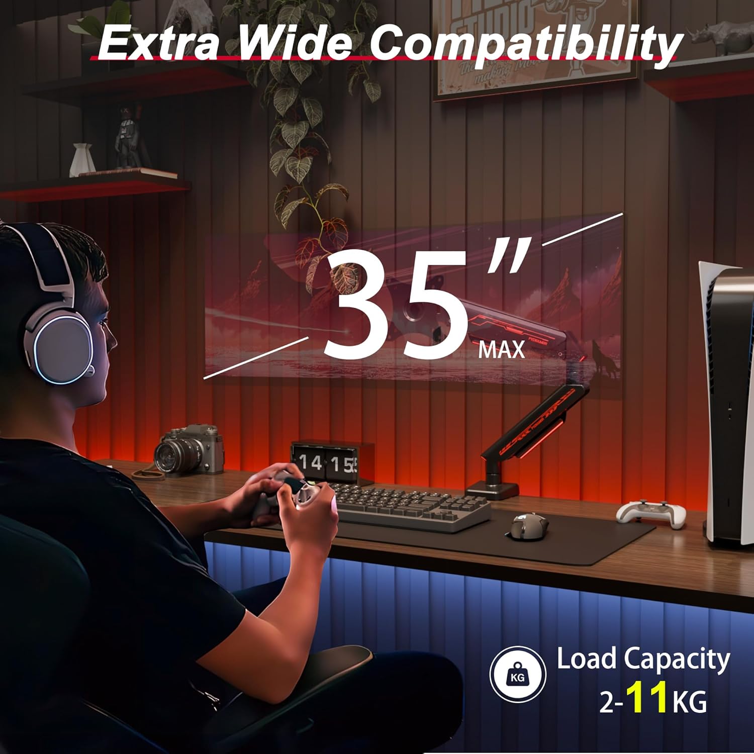 【Universal Monitor Compatibility】This premium monitor arm fits 17-35″ screens (4.4-24.3 lbs) with VESA 75x75mm & 100x100mm patterns. The gas spring monitor stand delivers perfect ergonomic positioning for home offices or workstations.