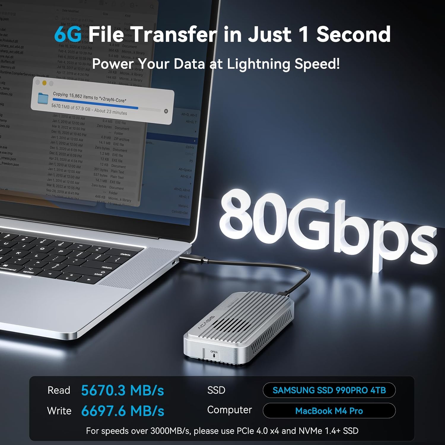 【Blazing-Fast Speeds】Enjoy read and write speeds up to 6000 MB/s. Perfect for content creators, gamers, and professionals handling large files or data-heavy tasks. ⚠️ To exceed 3000 MB/s, use a PCIe 4.0 x4 NVMe 1.4 or higher SSD.