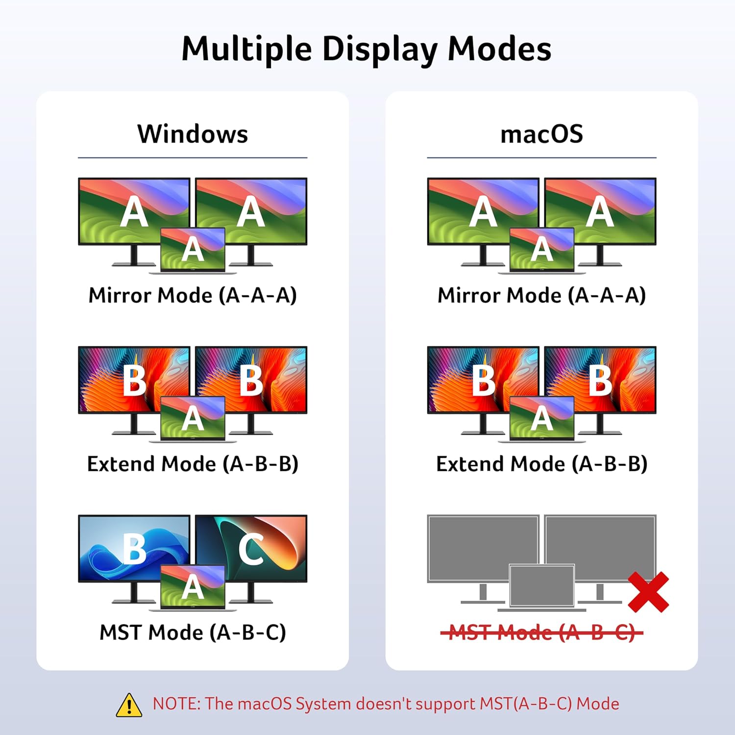 ใStunning Dual 4K@60Hz DisplayใThis dual hdmi docking station supports 4K@60Hz resolution on both single and dual displays with HDMI 2.0. ๐๐๐จ๐ญ๐: ๐๐ฅ๐๐๐ฌ๐ ๐๐ง๐ฌ๐ฎ๐ซ๐ ๐ญ๐ก๐๐ญ ๐ฒ๐จ๐ฎ๐ซ ๐๐๐ฏ๐ข๐๐ (๐ข๐ง๐๐ฅ๐ฎ๐๐ข๐ง๐ ๐ฅ๐๐ฉ๐ญ๐จ๐ฉ, ๐๐๐๐ฅ๐๐ฌ, ๐๐ง๐ ๐ฆ๐จ๐ง๐ข๐ญ๐จ๐ซ๐ฌ) ๐ฌ๐ฎ๐ฉ๐ฉ๐จ๐ซ๐ญ๐ฌ ๐๐๐๐ ๐.๐ ๐จ๐ซ ๐ก๐ข๐ ๐ก๐๐ซ ๐ซ๐๐ฌ๐จ๐ฅ๐ฎ๐ญ๐ข๐จ๐ง.