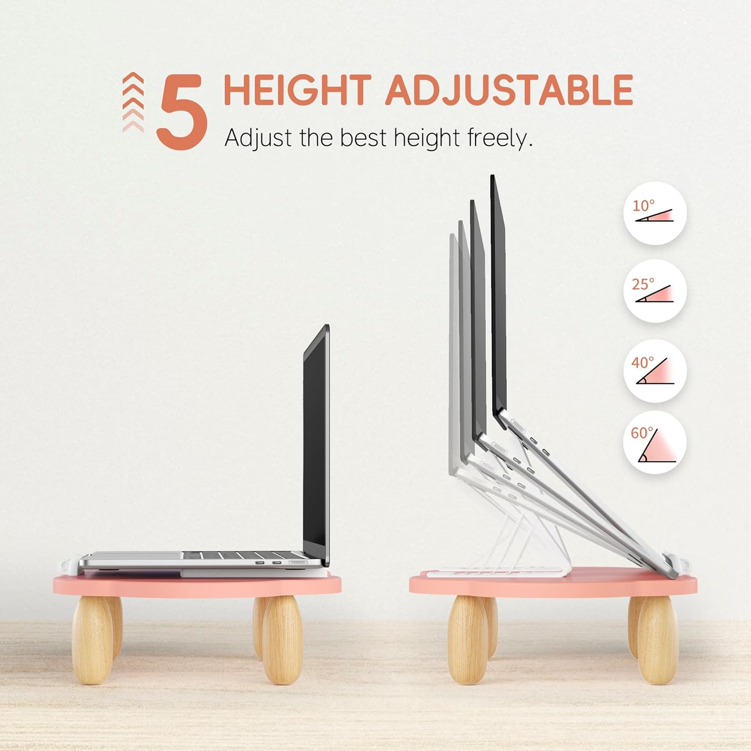 Adjustable Cloud-Shaped Laptop Stand, Pink, 10-17.3″ Laptops, Ergonomic Height & Angles, Strong Stability, Effective Heat Dissipation