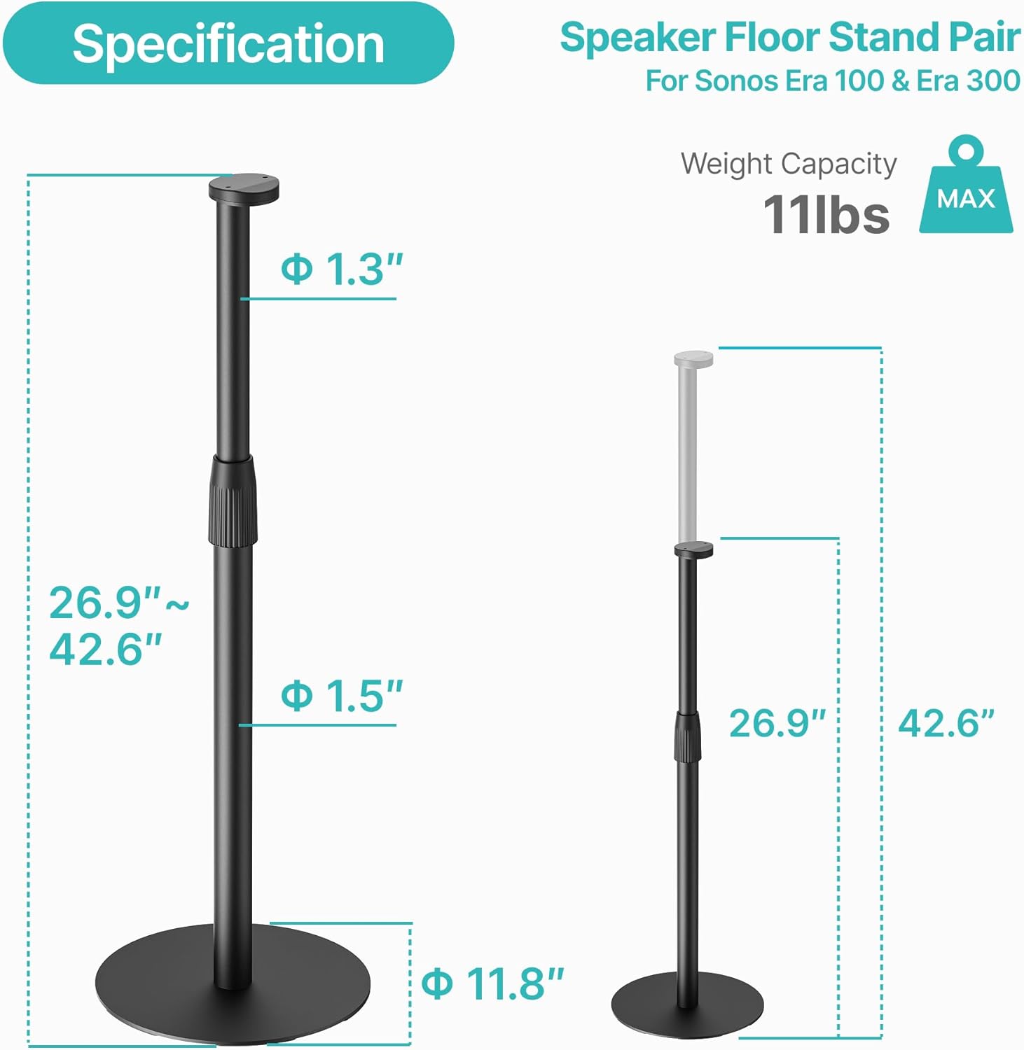 ADJUSTABLE HEIGHT: The speaker stands for sonos era 300 is height adjustable from 26.9 to 42.6 inches, allowing you to find the perfect height for an optimal audio experience in any room.