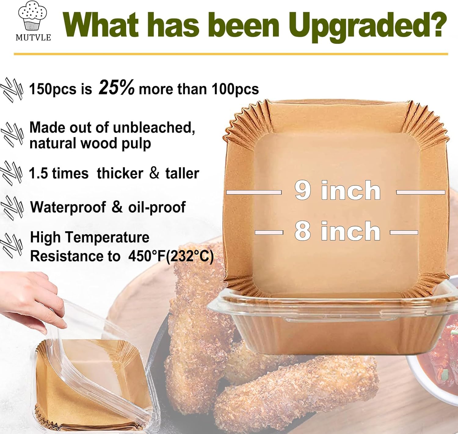 【Easy to Use】These non-stick air fryer disposable paper liner are designed with a square bowl shape, which do not need to tear, fold, cut, nor bend, and you can directly put it in when you are ready to cook. Its heightened edge 4.5cm can protect the side of fryers and prevent food from sticking to them.