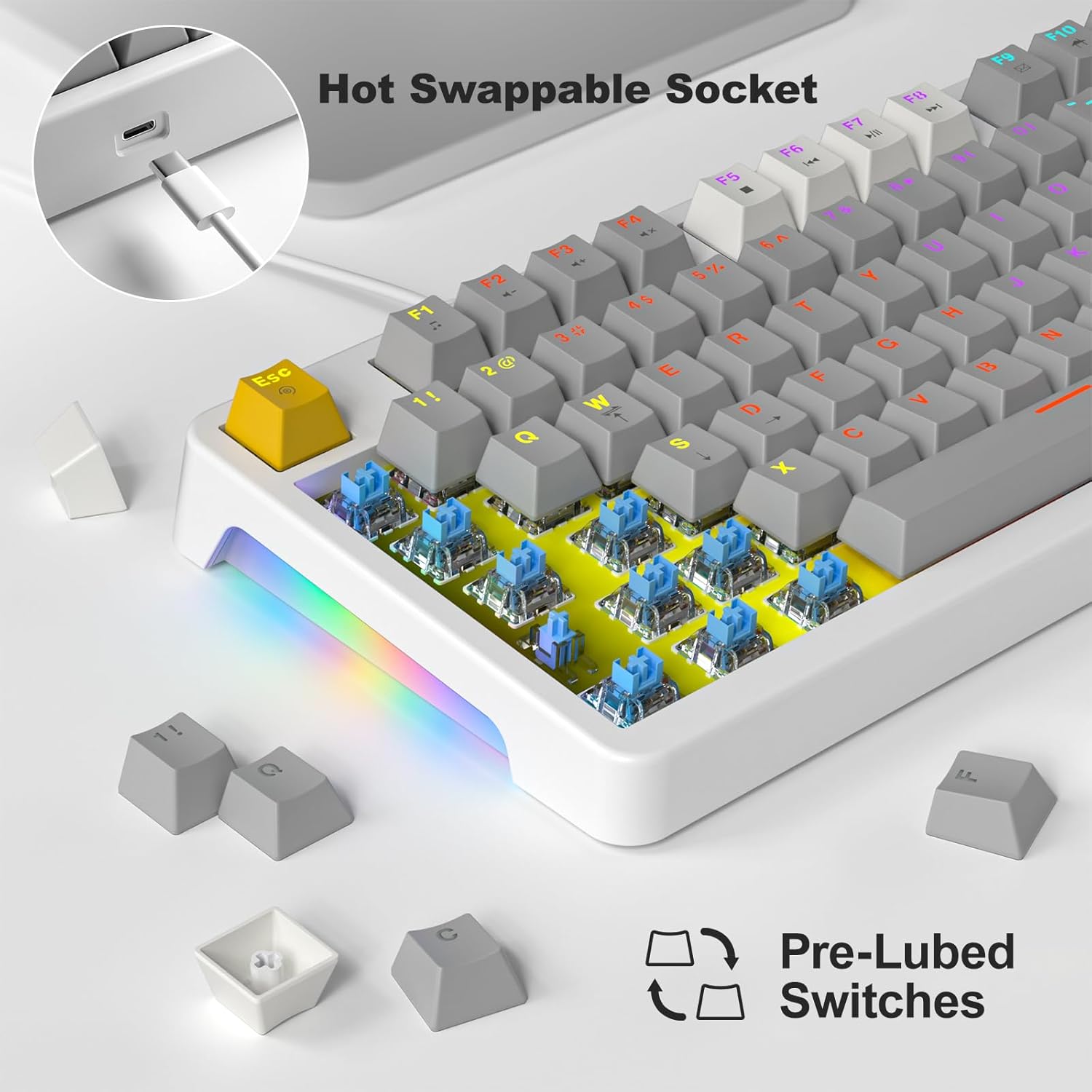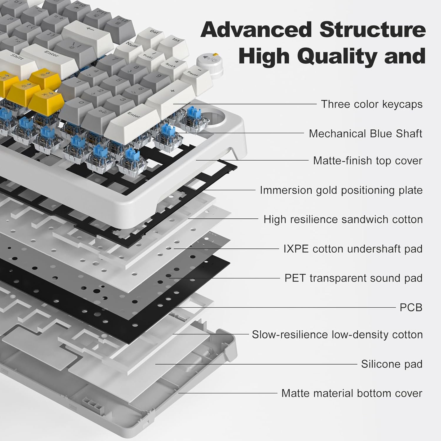 Compact 96% Layout AK96 Mechanical Keyboard: PBT keycaps resist fading, retain arrow keys & numpad for work/gaming versatility.