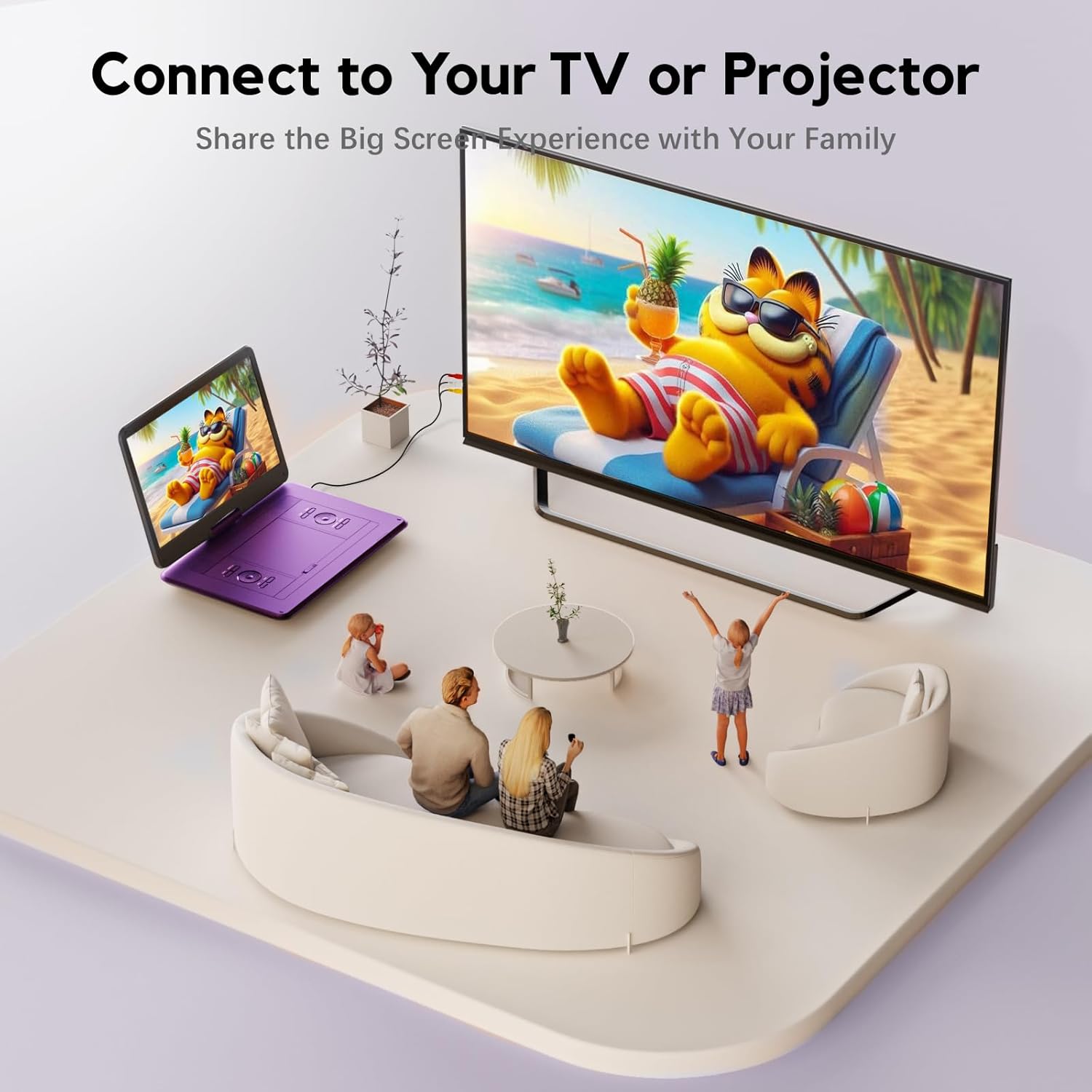 15.6” HD High Resolution Screen – Watch movies comfortably for hours on our sharp 1280×800 resolution display with anti-glare technology, designed to minimize eye strain. Rotate 270° or flip 180° for perfect angles in cars, planes, or at home—no more neck strain