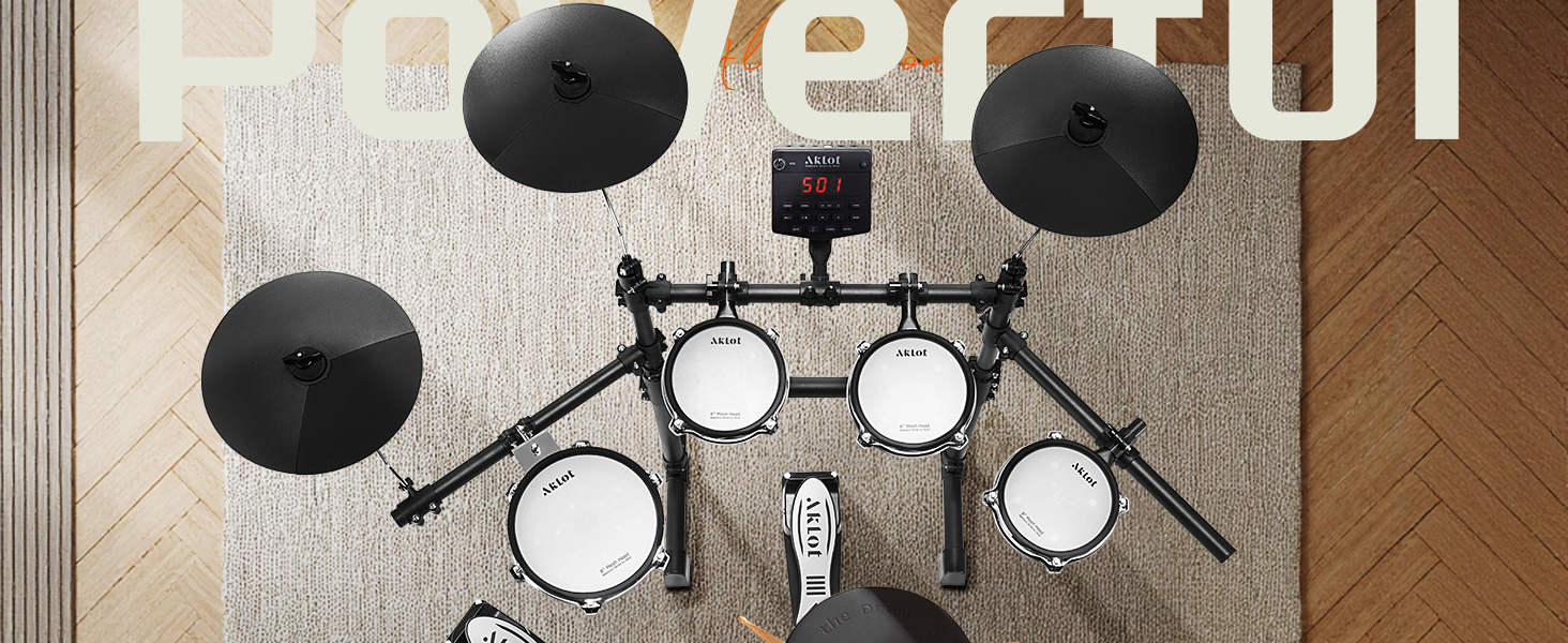 Tunable Mesh Snare and Tom Heads: Featuring adjustable triple-layer mesh heads and tension lugs, the snare and tom pads let you fine-tune the rebound to your preference—whether you want a tight, snappy response or a looser, heavier hit. They deliver a satisfying, acoustic-like feel while staying quiet, so you can plug in your headphones and play all night without disturbing family or neighbors.