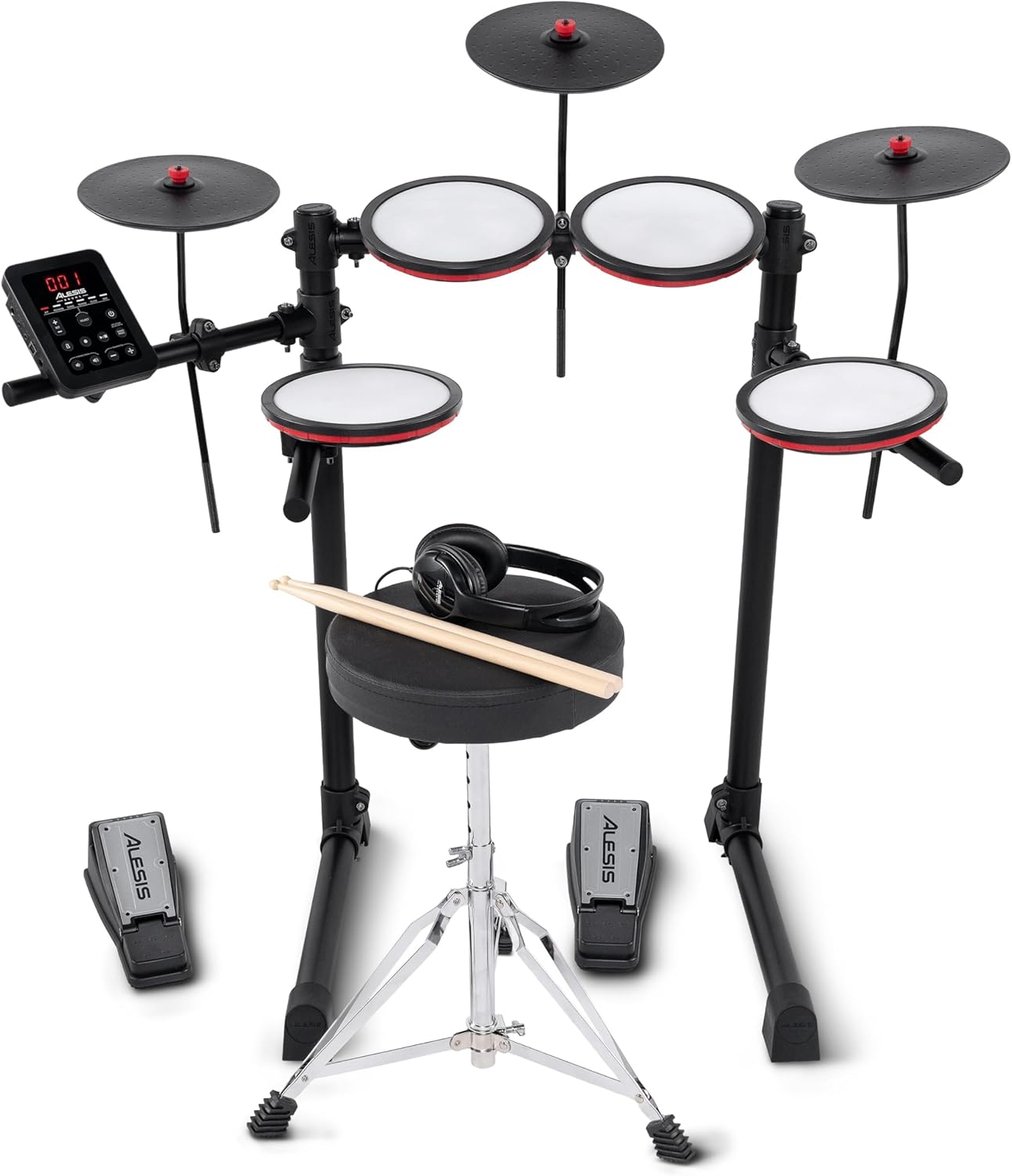 This introductory kit packs pro-level sound into a compact, interconnected system that easily folds up to fit in bedrooms, storage rooms, or practice spaces. Designed for continuous learning, it includes everything a new drummer needs on day one – drumsticks, a collapsible drum throne, a power supply, all cabling, headphones, plus industry-leading Melodics online drum lessons.
