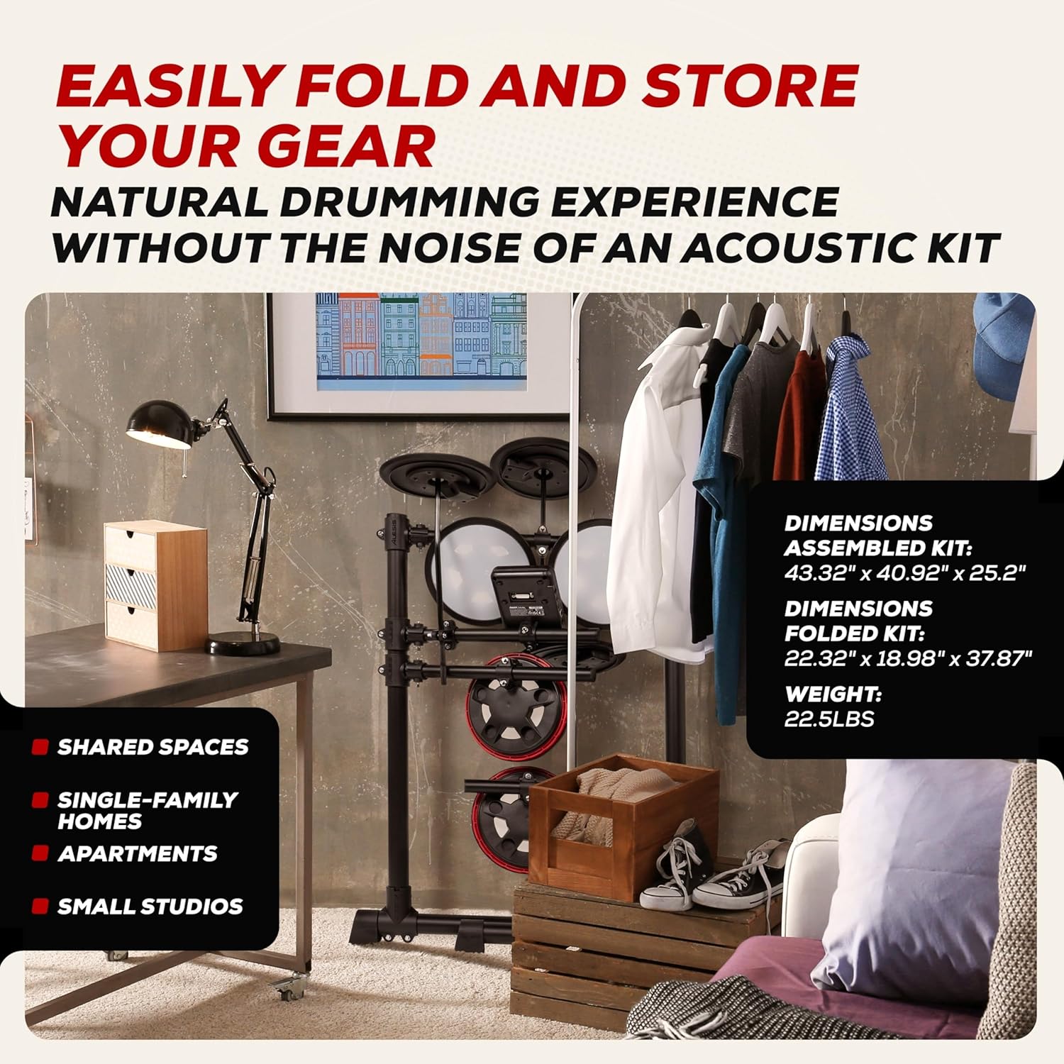 Peaceful Practice – Compact and travel-ready, the foldable space-saving design fits in bedrooms, living rooms, or anywhere you want to play and practice; kick and hi-hat pedals keep noise through the floor to a minimum; fold away and put your Turbo Max right where your journey begins