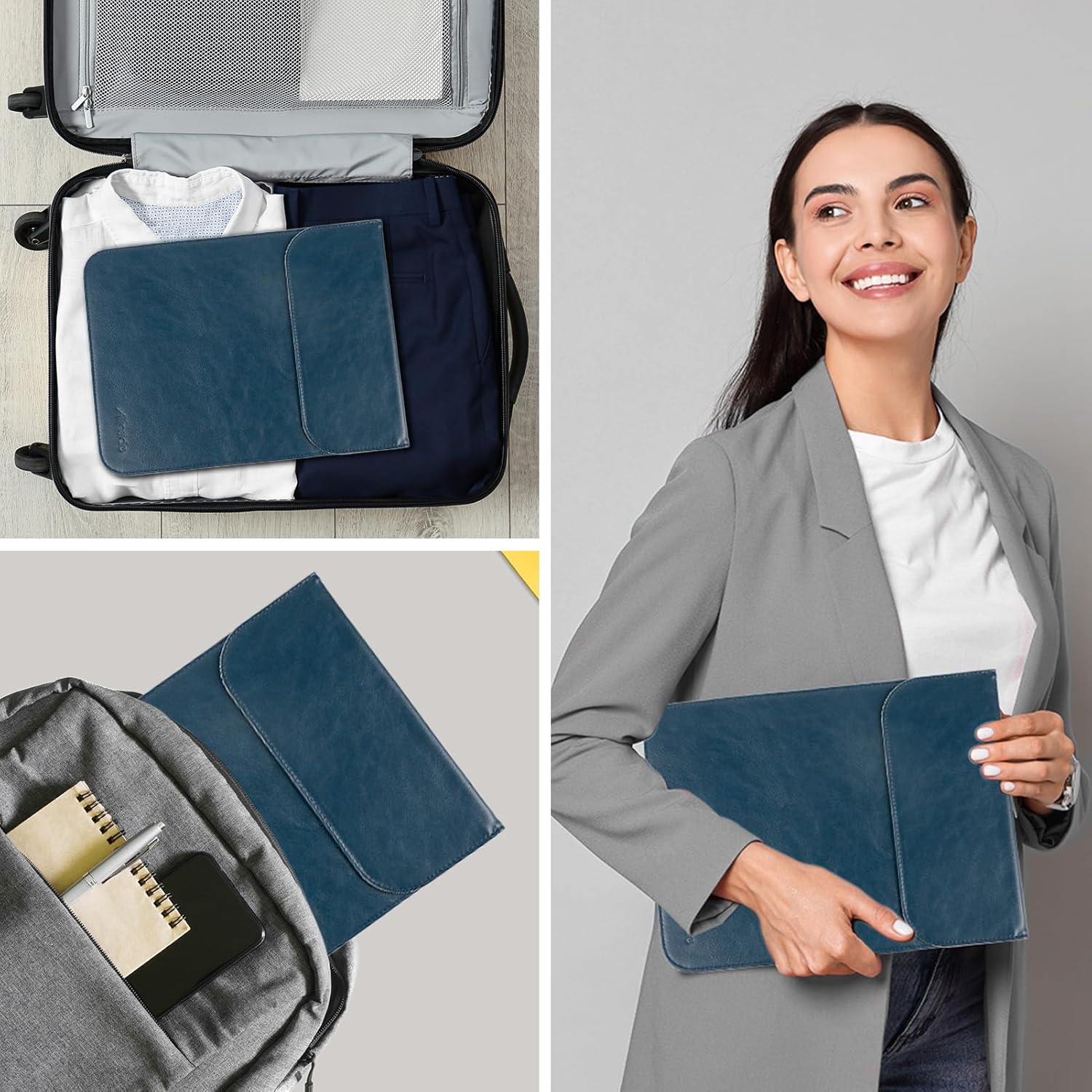 Premium Leather: Made of water-resistant PU leather and soft lining, this sleeve case will effectively protect your laptop from unwanted scratches, water, coffee and dust