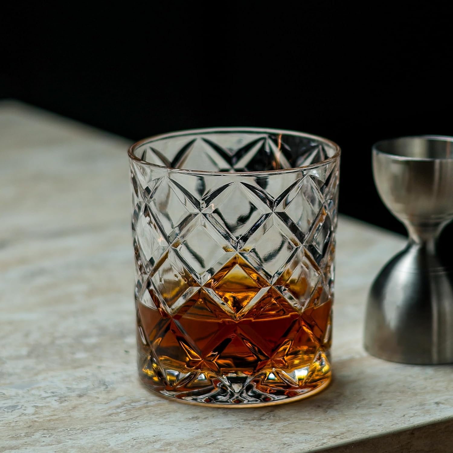 This 12 oz celestial slim Jim sipper features a brilliant Japanese diamond-cut design for a touch of elegance and grip on the glass.