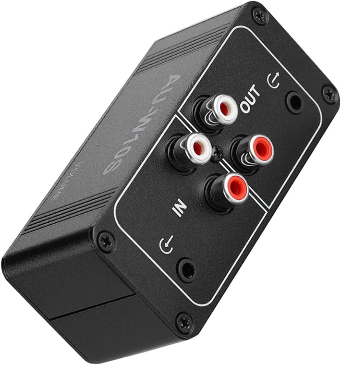 Mini stereo audio preamplifier possess small size, easy to carry and use. Size is 90mm(L) x 38mm(W) x 38mm(H).