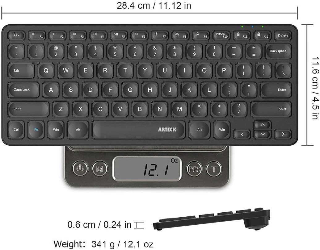 Ultra Thin and Light: Compact size (11.12 X 4.5 X 0.24in) and light weight (12.1oz) but provides full size keys, shortcuts for comfortable typing.