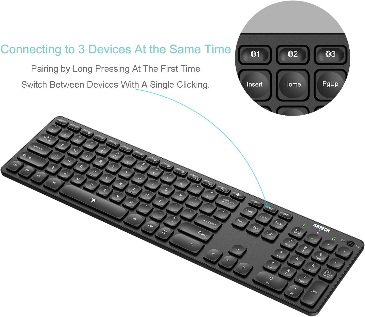 3 Devices Switch with A Single Clicking: This keyboard is able to connect to 3 devices at the same time. You can switch between 3 devices with a single key clicking.