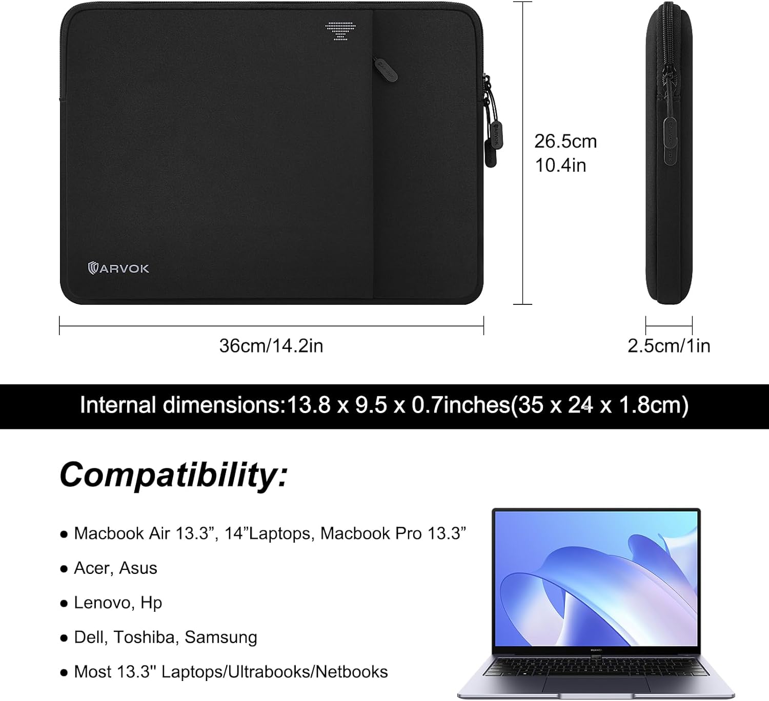 【Multipurpose】ARVOK laptop sleeve case is perfect for women and men’s daily use on office, business trip, travel etc. 13-14 inch laptop carrying case bag, a fantastic present for women and men.