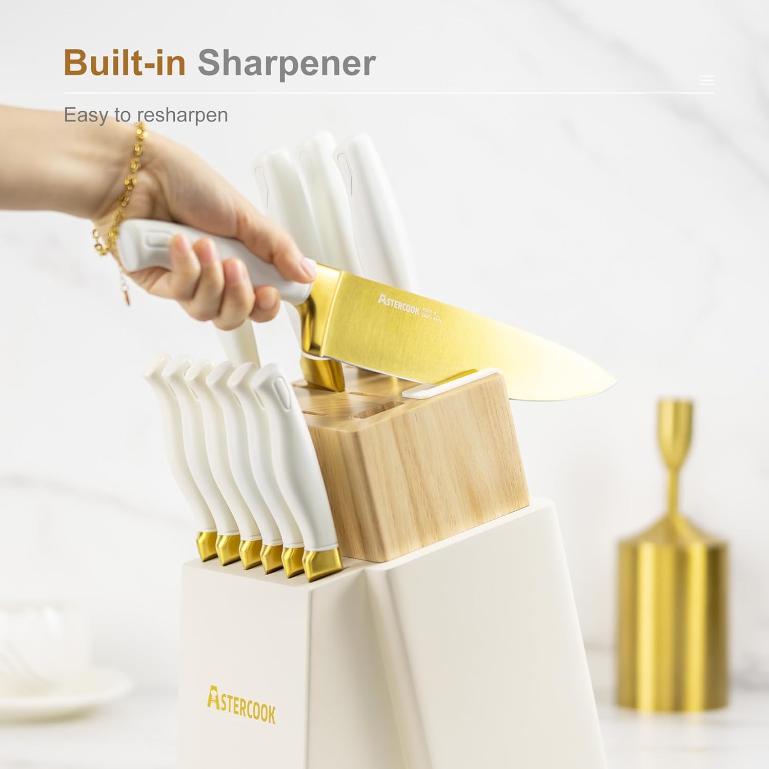 Dishwasher Safe – This Astercook knife block set is dishwasher safe and easy to maintain. It is perfect for cleaning, drying, and then storing. The entire knife set is made from upgraded high-quality German stainless steel, which won’t rust like other knife sets. Additionally, it can withstand the high-intensity impact of the dishwasher without damage.