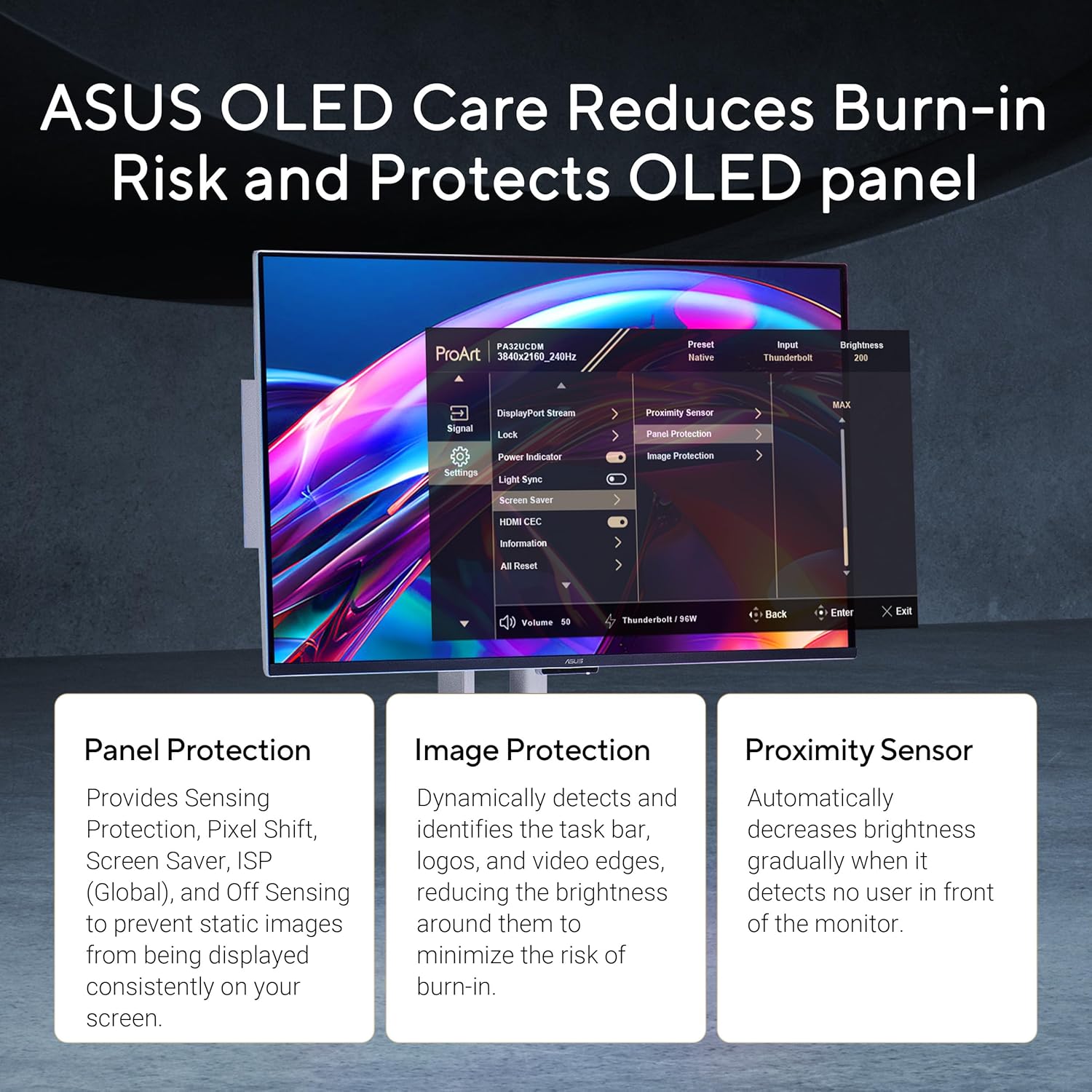 ProArt Display OLED PA32UCDM is a professional monitor designed for professional content creators. This 31.5-inch 4K HDR display boasts a cutting-edge 1000-nits QD-OLED panel with 99% DCI-P3 gamut, ensuring highly-accurate colors and exceptionally-detailed visuals. Its up to 240Hz refresh rate enables creators to develop fast-rendering games and perform artwork quality checks on a single display. Additionally, support for multiple HDR format makes PA32UCDM the perfect monitor for working on fast-moving HDR content.