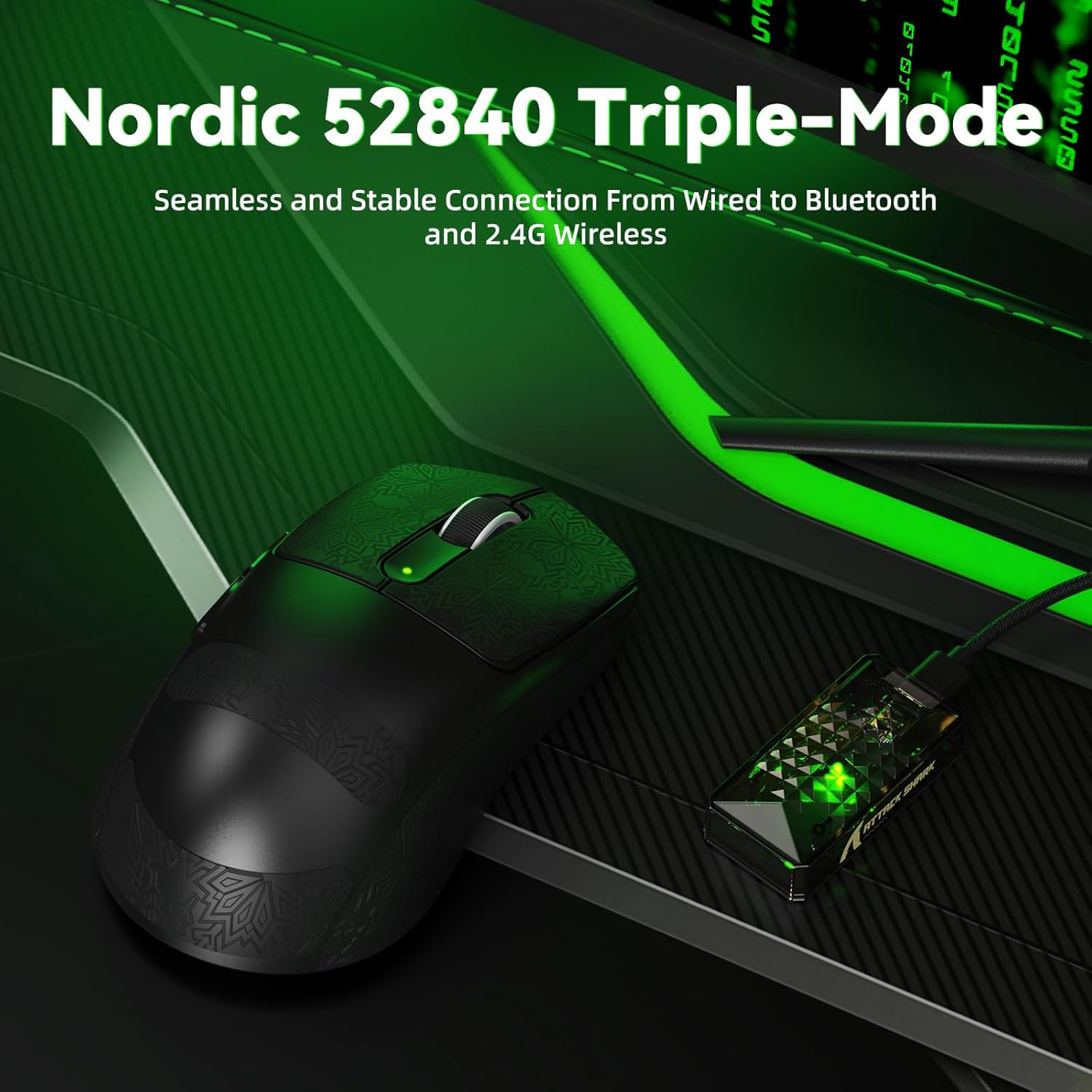 【 Versatile Connectivity】 Offers three-mode connectivity, including wired, Bluetooth, and 2.4G wireless options, with a wireless 8000Hz polling rate and a wired 1000Hz polling rate.