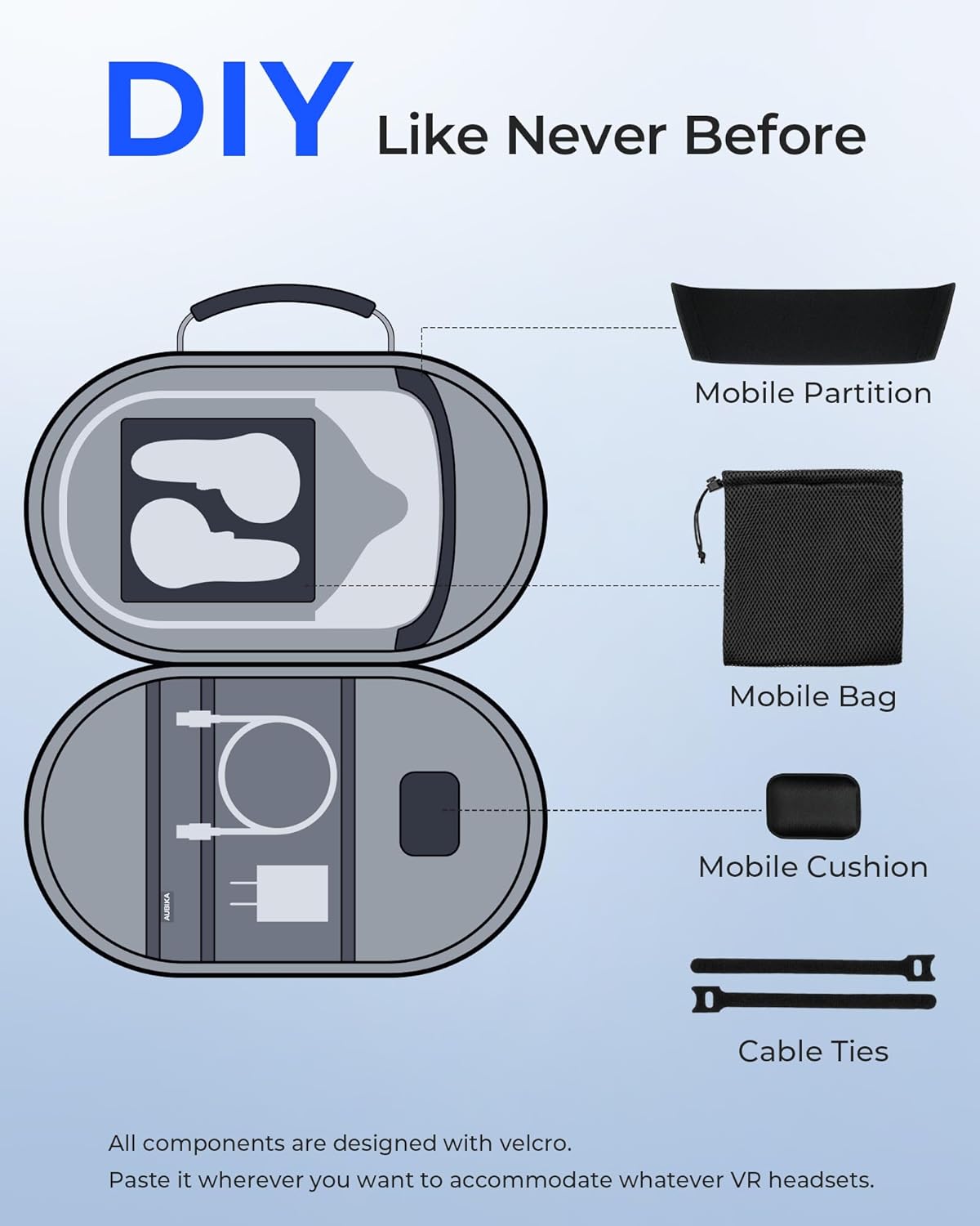Aubika for Meta Quest 3 Case, Hard Carrying Case for Oculus Quest 3 Accessories, Compatible with Quest 2/Pico 4 Headset, Travel and Storage