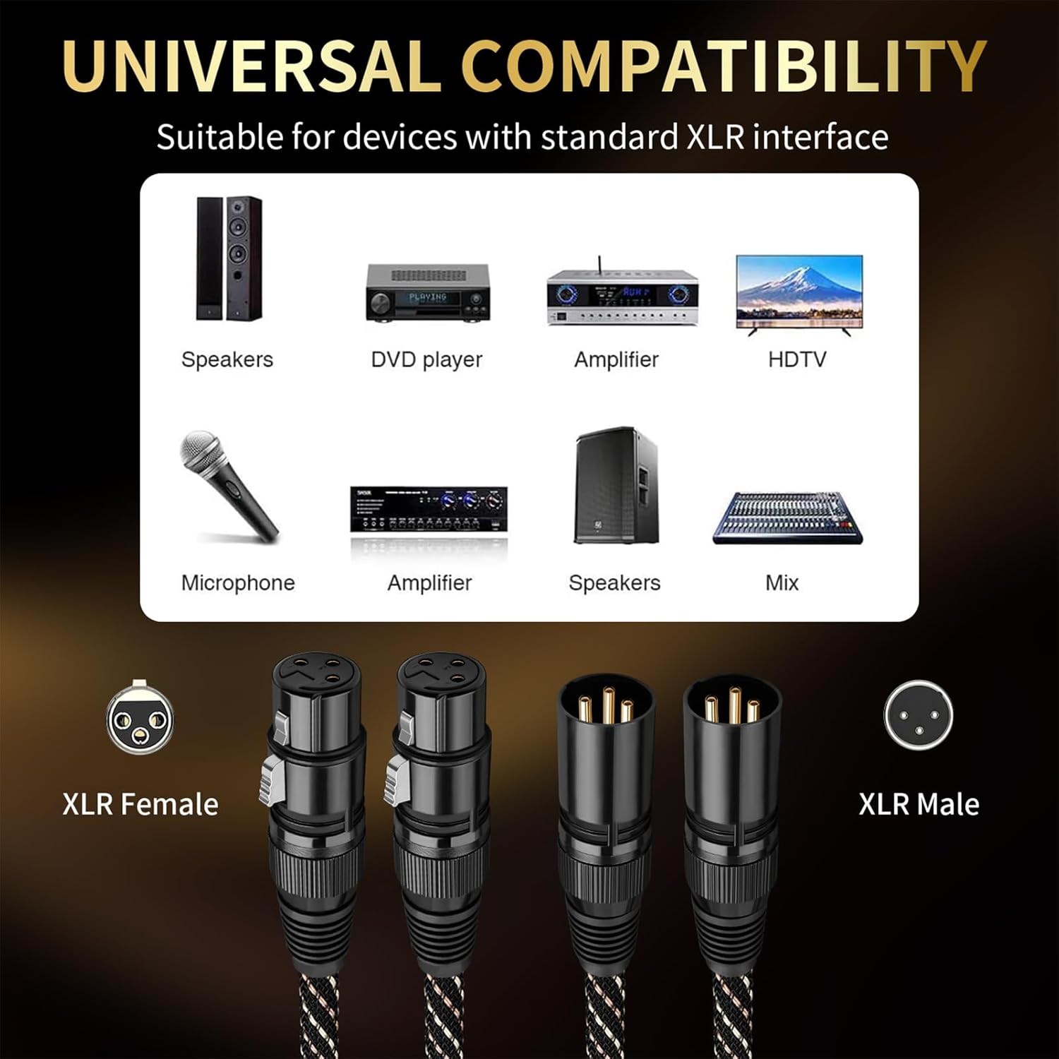 24K Gold-Plated Pure Copper Connectors: 5-micron thick plating (thicker than standard 2-3 microns) ensures longer-lasting corrosion resistance. The pure copper core guarantees smooth plugging/unplugging, making this XLR cable highly reliable. Enjoy crisp, stable performance—no glitches, even after 1,000+ insertions. Perfect for both standard and short XLR cable configurations.